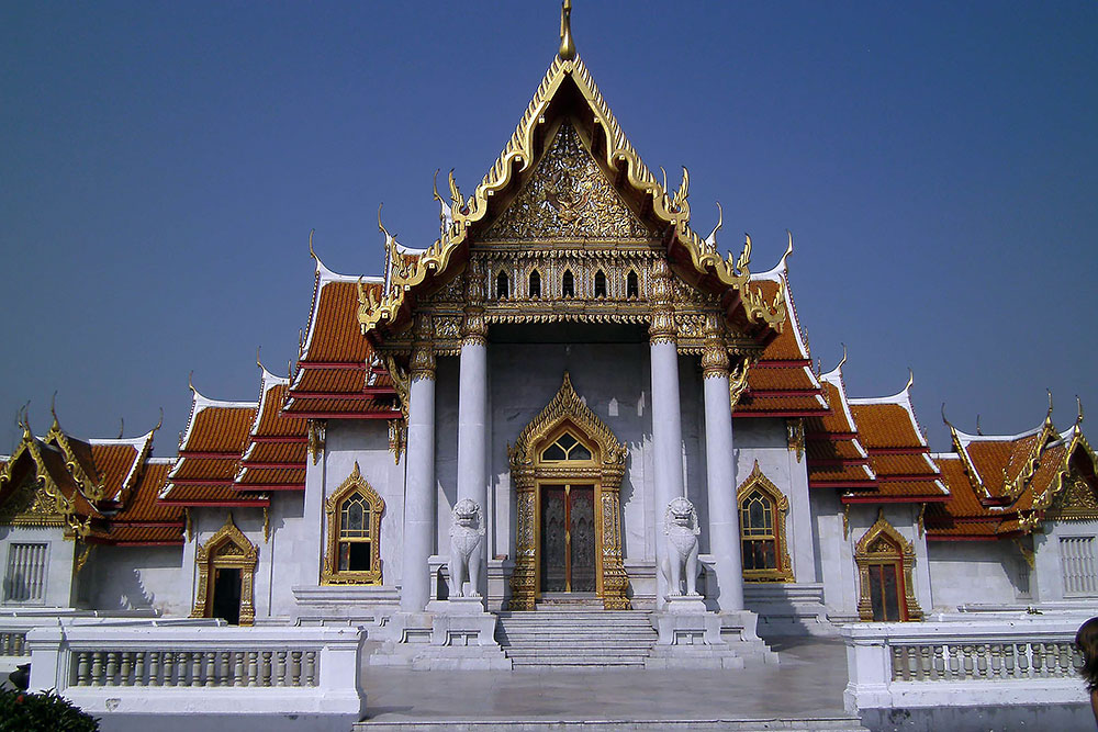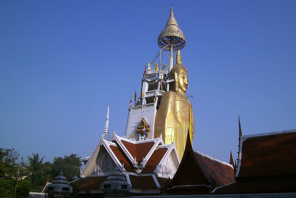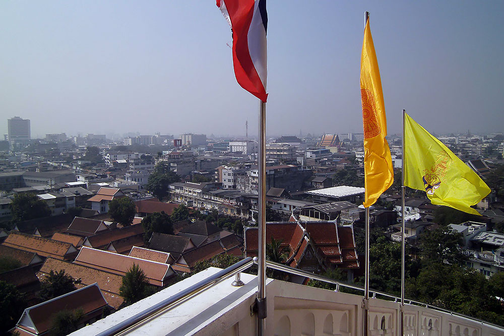 Touristen, Shops verkaufen alles zum Überleben aber noch kein Frühstück. Mein Rucksack ist angekommen, hatte zu viele Feuerzeuge dabei, die gefährden die Flugsicherheit, alles klar! Laufe in die Stadt, will mit den Demonstranten sprechen, ist alles abgeriegelt. Werde durchsucht und darf auf eigenem Risiko rein. Sie schlafen in Zelten oder unter Plastikfolien. Sieht aus wie auf einem Festivalgelände, mitten in der Stadt. Bekomme zu hören, dass die meisten nicht für sich selbst, sondern für ihre Chefs demonstrieren, die sonst mit Entlassung gedroht haben. Sie wären stolz auf ihren Premierminister, der endlich allen Kredite für Autos, Häuser oder Geschäftsgründung ermöglicht hat. Der upper-class passt das aber wohl gar nicht und so sollten lieber wieder die Roten statt der Gelben an die Macht oder umgedreht. Zur Demonstration gezwungen, wie verrückt, ich haue ab. Hole meinen Rucksack, darf nicht länger bleiben, der Khao San Road ist nicht einfach zu entkommen. Ich schleiche mich still davon. Stehe mit einer Karte in der Hand am Strassenrand und werde angesprochen. Das National Museum, der Markt auf dem Fluss... alles geschlossen, da jetzt 3Tage lang Neujahrsfeier ist. Er, ein ca. 30jähriger Thai, ruft mir ein TukTuk. Ein staatliches, eins mit Fähnchen oben drauf. Kostet nur 40,-Baht (1,-€) für 3h Fahrt. Der Thai erklärt dem Fahrer, was er zu tun hat. Wir fahren durch die Stadt und er bringt mich zu den bedeutendsten Tempeln des Königs, die nur an diesen 3Tagen für die Öffentlichkeit zugänglich sind. Lucky Tempel, Wat Indrawihan... |