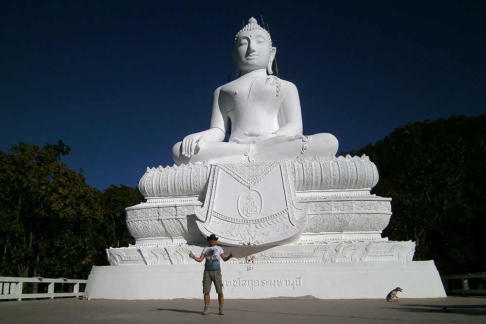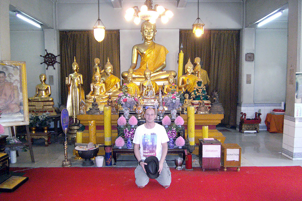 Beweisfoto des Thailand-Urlaubs, an einem Tigertempel. Ich lehne