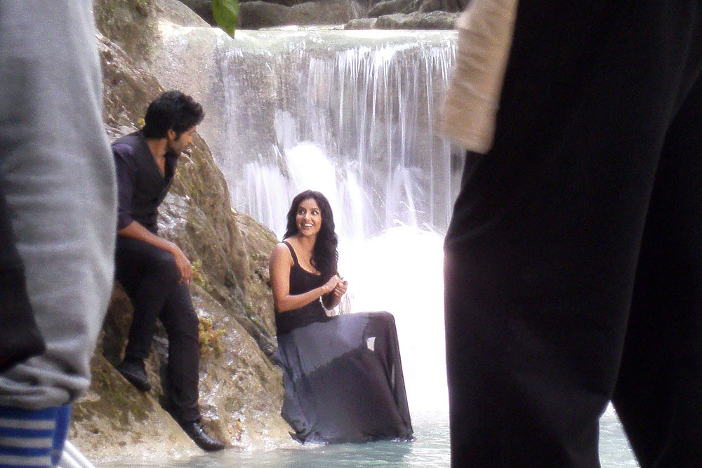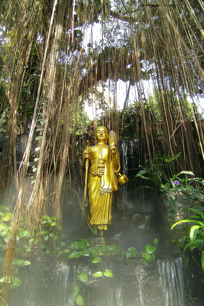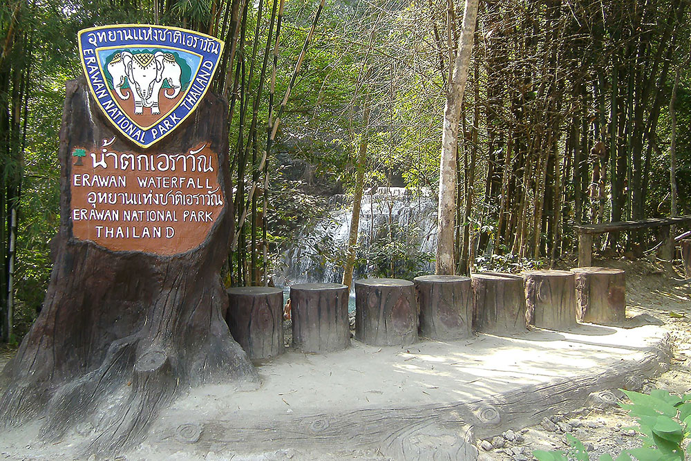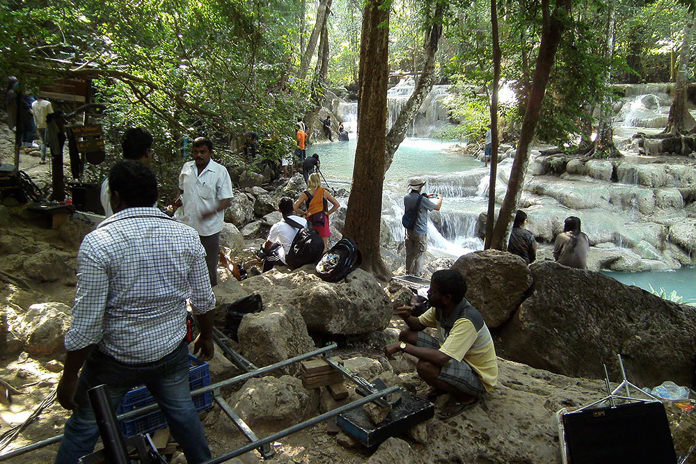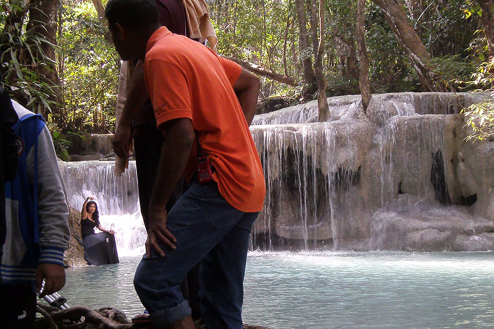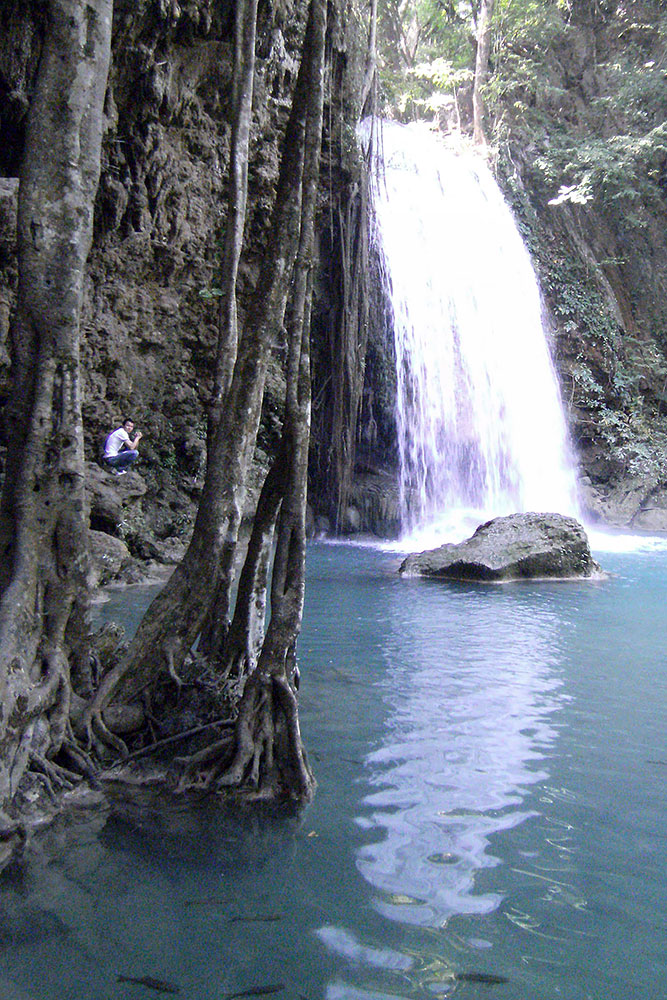 | Ungefähr 4km geht es steil bergauf, bis zu Level 7. Dann kann man den Wasserfall von Erawan von oben sehen und auch hier bietet sich mir ein Schauspiel, wie Highheels Level 2 erreichen wollen. Erst dort können die geschundenen Füsse dann in einem Becken gekühlt werden. Bei Level 5 wird gerade ein Musikvideo gedreht und ich sehe eine Schönheit halb erfroren im Wasser sitzen. Da das Equipment den Weg versperrt, geht es nur noch durch den Dschungel weiter, sodass ich ab Level 6 schon fast alleine bin. Die Vögel kreischen wie wild oder lachen sich kaputt, über den durchgeschwitzten Idioten. Scheiss drauf, Level 7 ist das Ziel. |
