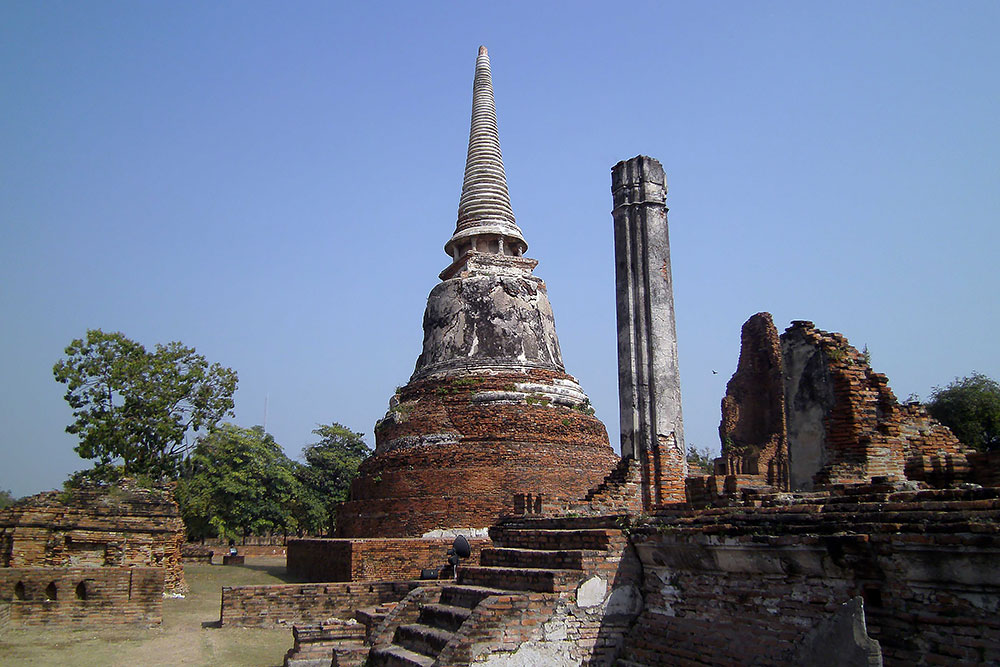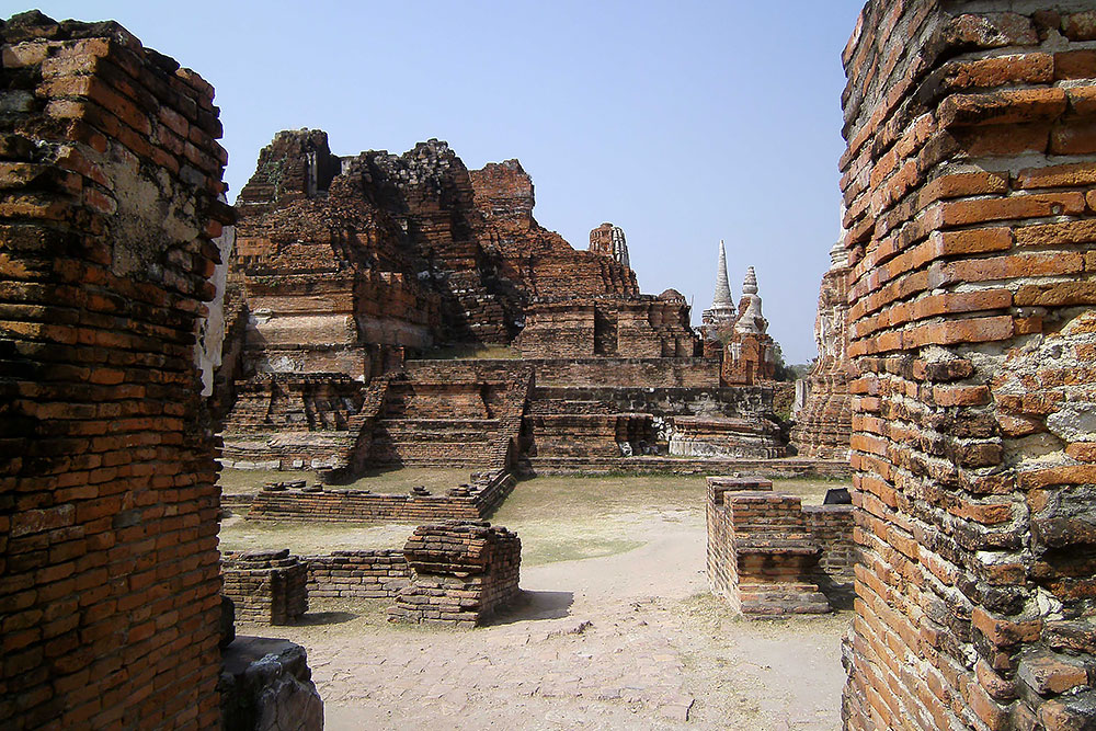 Ayutthaya. In einem Hostel bekomme ich ein Zimmer mit drei Betten