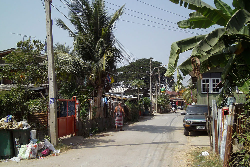 trinken, frage ob ich was haben kann, natürlich. Etwas später kommt ein blonder Typ angetorkelt, Andreas will aber Andy genannt werden, weil die Thais ihn immer Andrea nennen. Er stammt aus Chemnitz, wohnt seit 4Jahren hier, war vorher 6Jahre in Österreich. Seine Thai hat ihn abgezockt, jetzt lebt er allein von wenig Invalidenrente in einer kleinen Bude. Andy ist ca. 50, scheint ein kleines Alkoholproblem zu haben und will mir unbedingt noch einen coolen Discoschuppen zeigen, er weiß das ich zahlen kann und holt seine Mofa. Nach 100m liegen wir lang, soll ich nicht besser fahren? Nein! Es ist 03:00Uhr, Andy ruft einen TukTuk-Fahrer an. Seinen TukTuk-Fahrer! Der kommt mit dem Schlafanzug unter der Hose und Jacke, wir ziehen durch die Nacht, es endet mit einer Schlägerei, mit ein paar betrunkenen Touris. Komme noch ganz gut davon! |