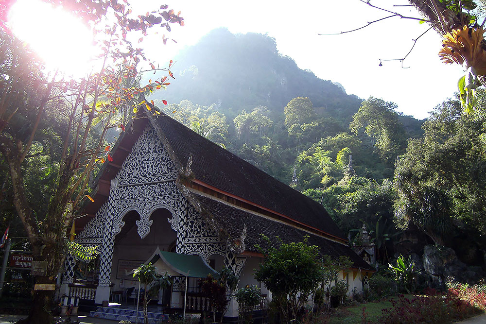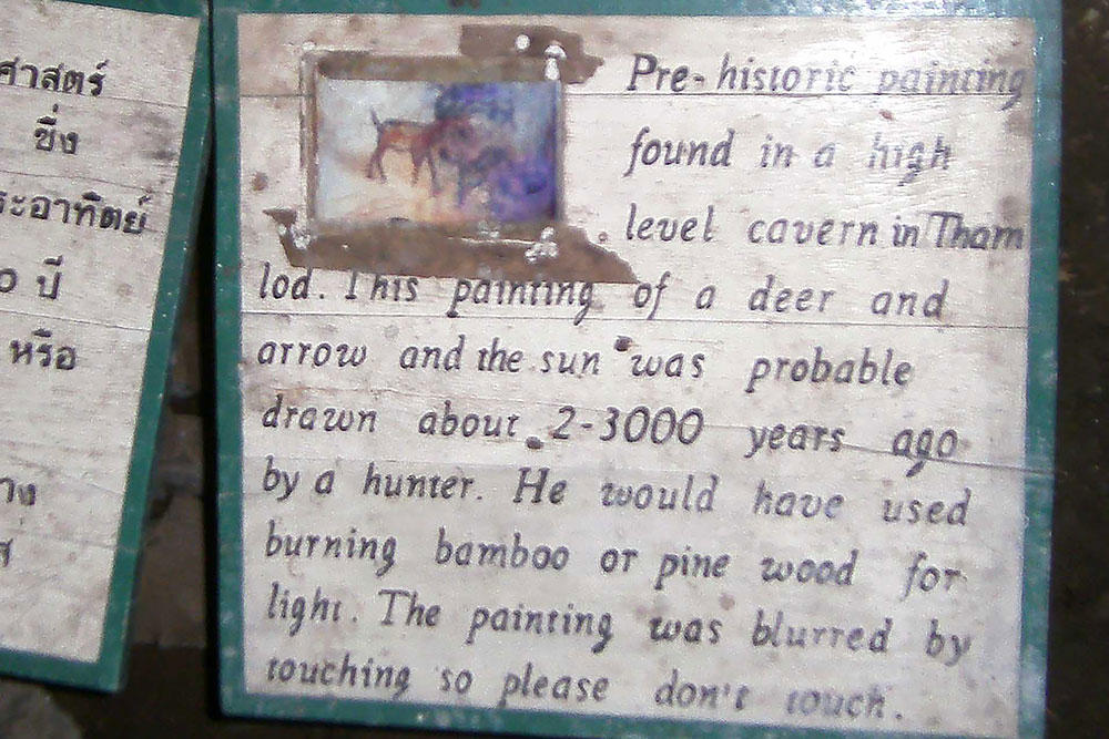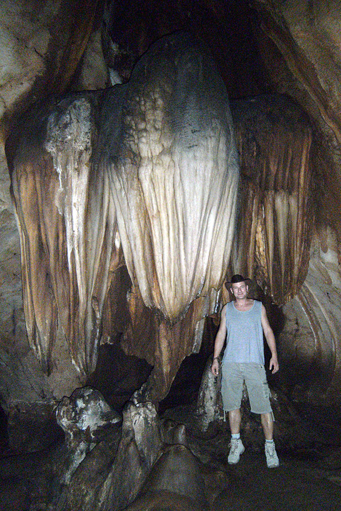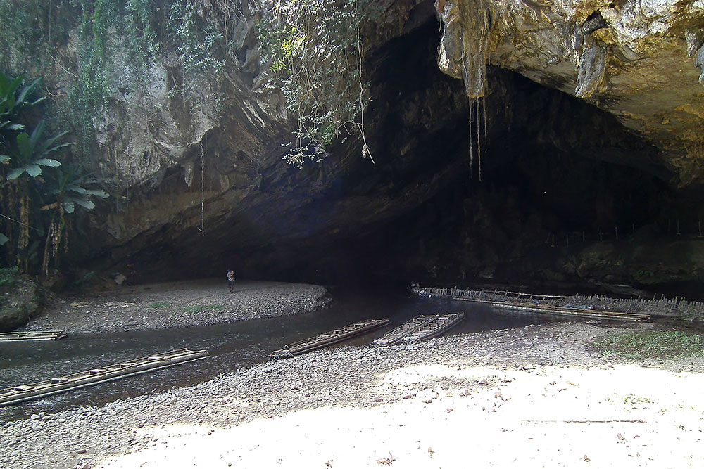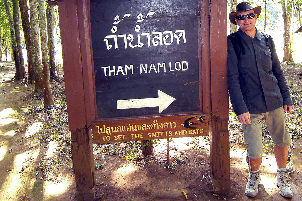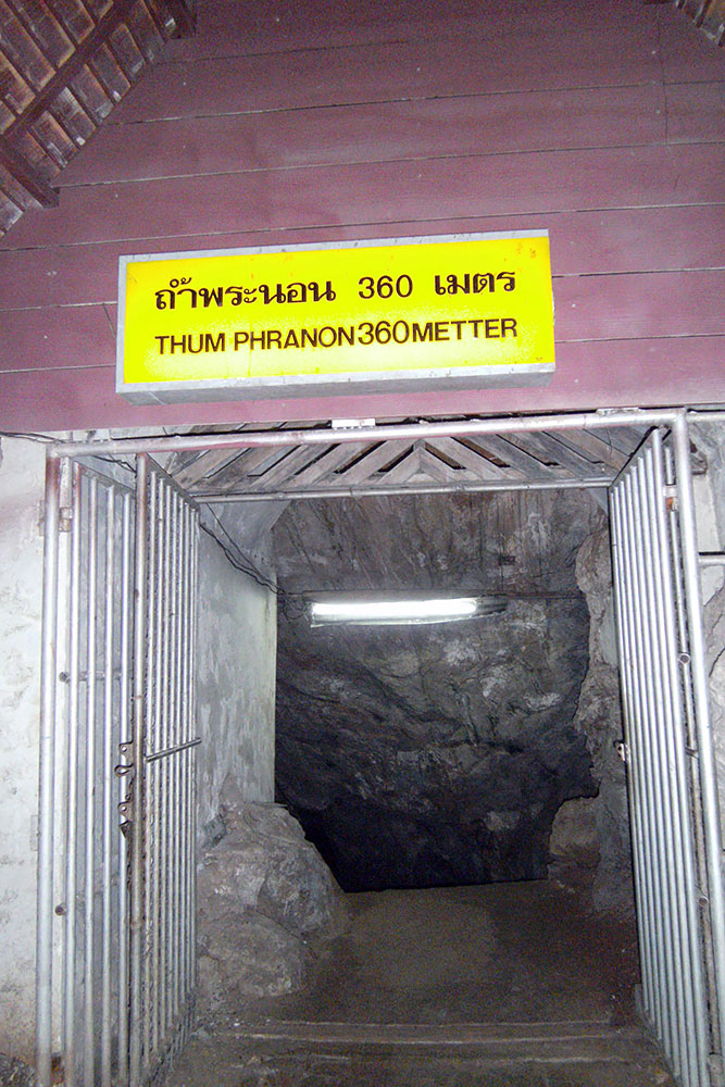 | Auf dem Gerät jage ich durch die Berge, weiter nördl. zu der Tham Nam Lod (Lot). Autos kommen mir entgegen wo sie nicht sein sollten, auf meiner Spur. Das Benzin reicht gerade so bis zur nächsten Säule, hab zuvor mit Händen und Füßen versucht den Leuten eine Tankstelle zu erklären. Die Cave ist kaum zu finden. Der Weg dorthin ist schmal und führt durch kleine Dörfer aber es lohnt sich. Ist die größte Höhle, die ich je gesehen habe. Meine Kamera aber viel zu schwach, um das Dunkel der einzelnen Bereiche auszuleuchten. Nur in kleinen Gängen war dies möglich. |