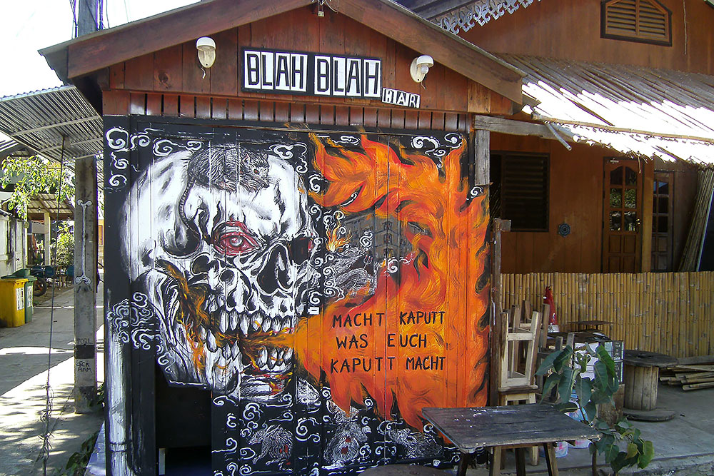 | Abends lande ich dann in einer Punk-Kneipe. Der Inhaber, ein Thai, war 2,5Monate einen Freund in Berlin besuchen und hat sich in die Szene samt Musik verliebt. Fuck off Ordnungsamt! |