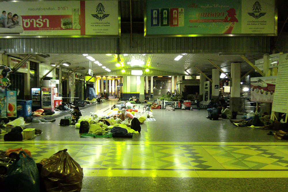 | 19:30Uhr auf einem Pickup zur railway station, der Bahnhof voll Backpacker, bin erfreut das so viele wegen der Natur nach Thailand kommen. |