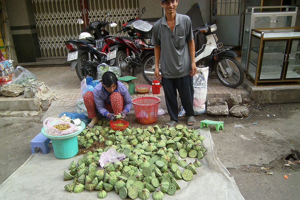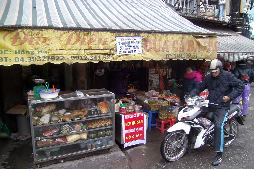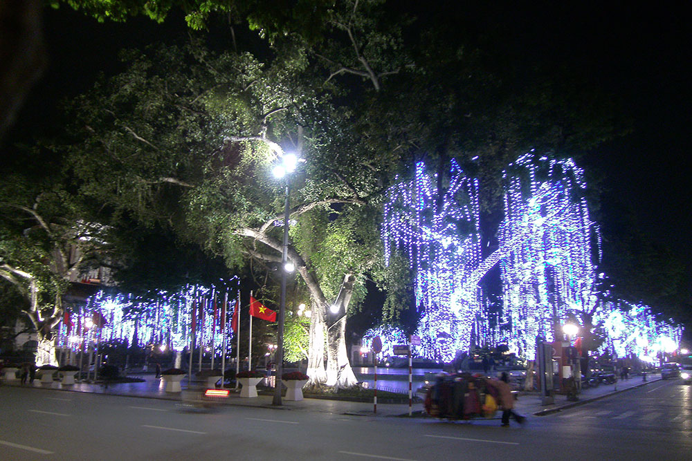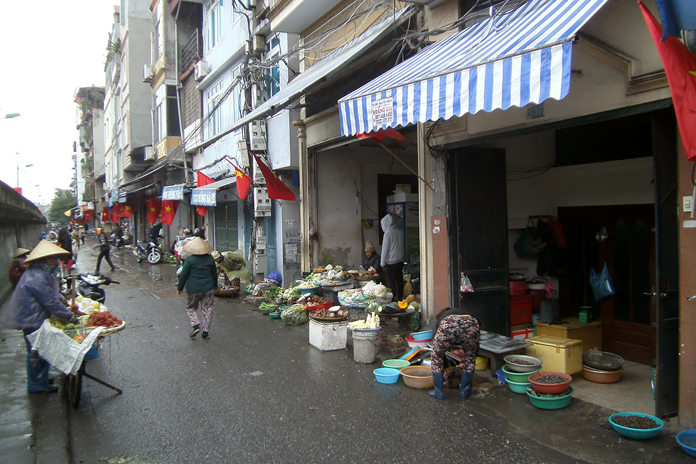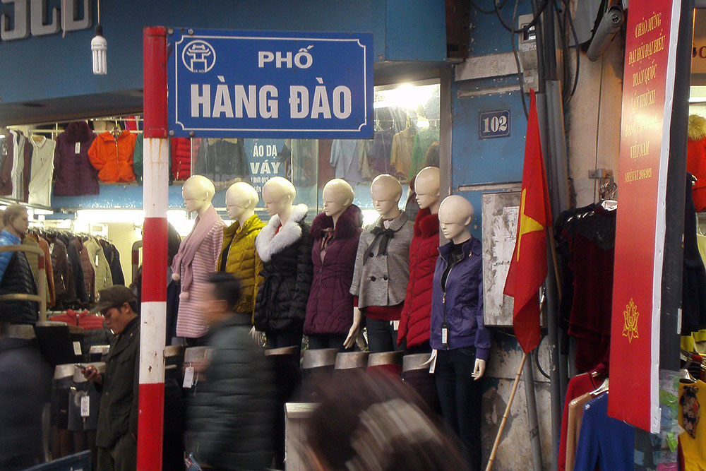 breit sind. Das Handwerkerviertel in der Altstadt, ein Highlight für Touristen, enttäuscht mich persönlich aber sehr. Statt Handwerk überall Geschäfte voller Ramsch aus China und dazwischen Partyhöhlen und Vergnügungstempel für die Besucher. Gleich null Flair! Dann lieber nach Kathmandu oder Lhasa! Es bildete sich ab dem 11. Jh. um den Kaiserpalast in Form von 36 Dörfern, in jedem Ort gab es ein anderes Handwerk, Gewerbe oder Zünfte, Innungen und Gilden. Aus dieser Zeit übrig geblieben sind „36 Gassen“. Sie sind nach den Waren benannt, die einst dort verkauft wurden. Hang Ca ist die Fischgasse, Hang Bo die Korbgasse, Hang Buom die Gasse der Segelmacher, Hang Non die der Hutmacher, Hang Hom die Sarggasse und Hang Dao die Seidengasse ist eine der ältesten, sie diente als Hauptachse von Nord nach Süd und halbiert die Altstadt. |