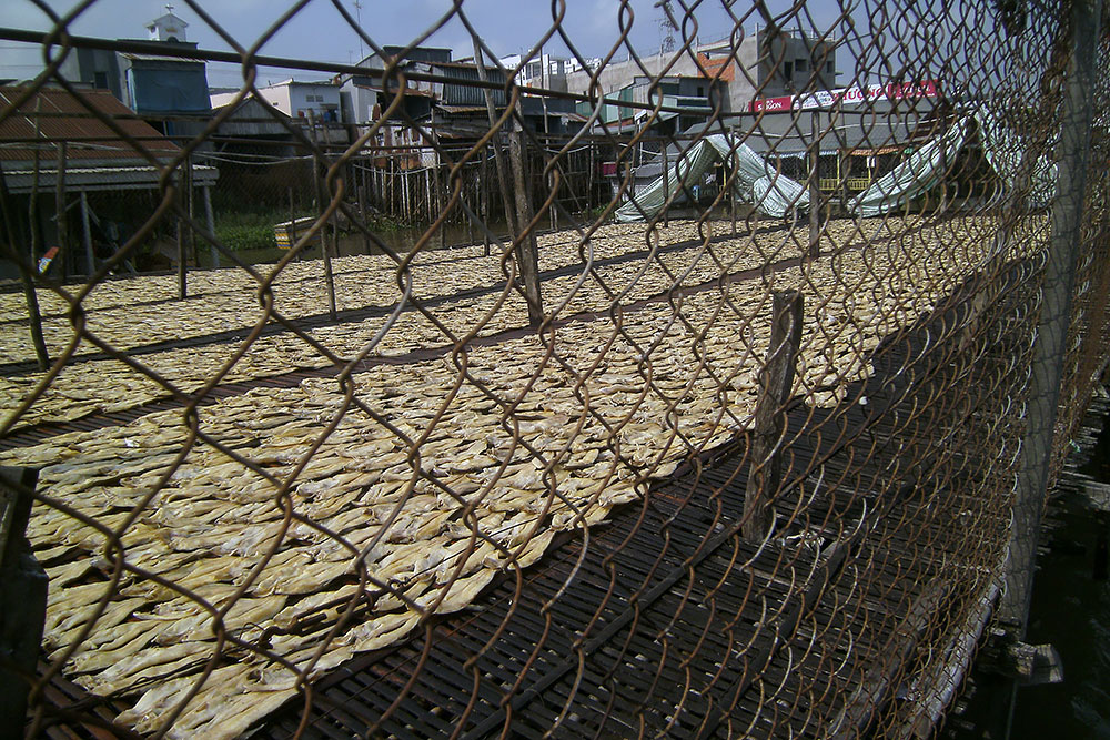 rechten Bild von den ersten zwei sieht man Fische, die zum Trocknen