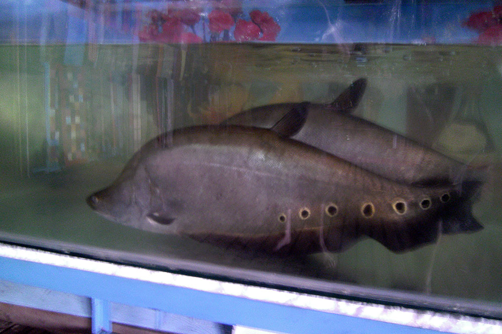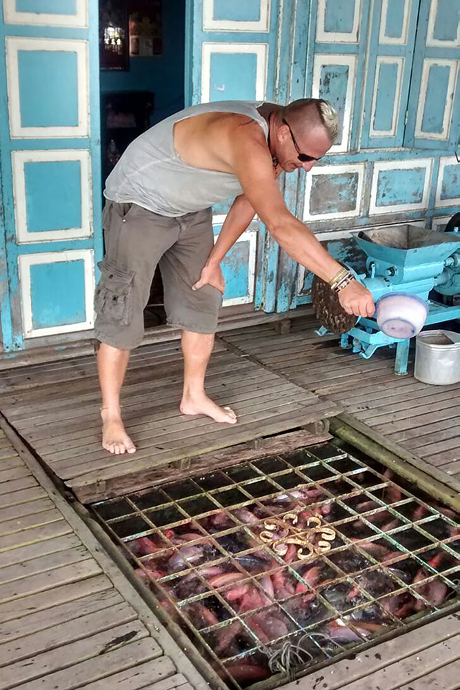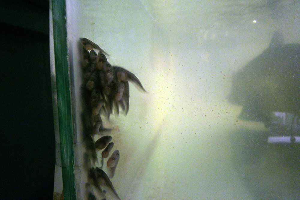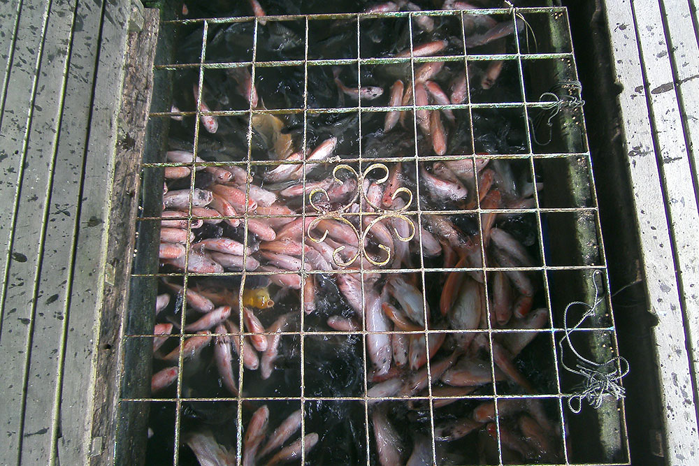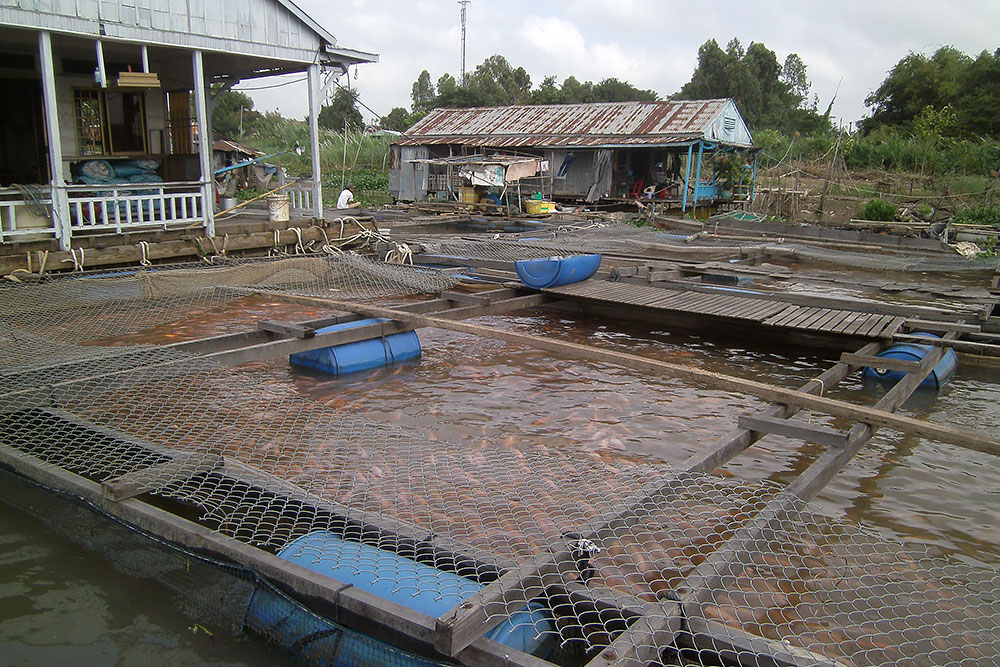 Gezüchtet werden hier hauptsächlich Pangasius und Tilapia. Auf dem