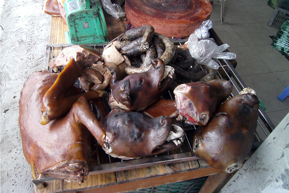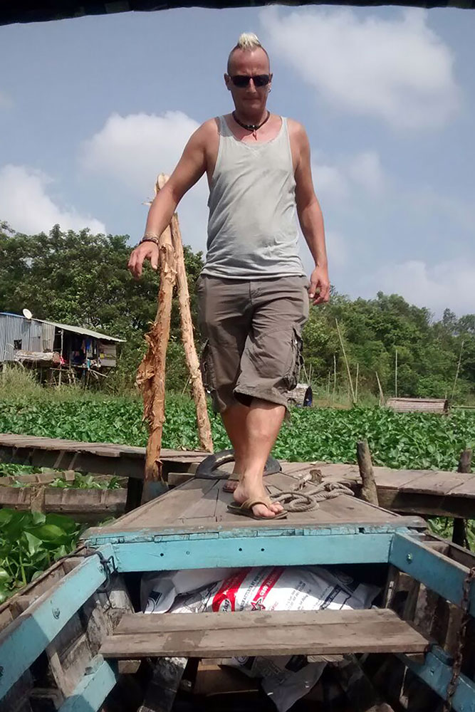 Motorboot und dann mit einem Kahn. Ob es hier auch Schlangen gibt, frage ich den Guide und er lacht. Nur ganz wenige, die haben wir schon alle aufgegessen, antwortet er. Ein Kilogramm Schlange kostet ca. 50,-EUR in Vietnam, erfahre ich. Das ist doch mal eine Geschäftsidee, Schlangenzucht in Vietnam. Oder von Thailand importieren, die haben ja mehr als genug davon. |
