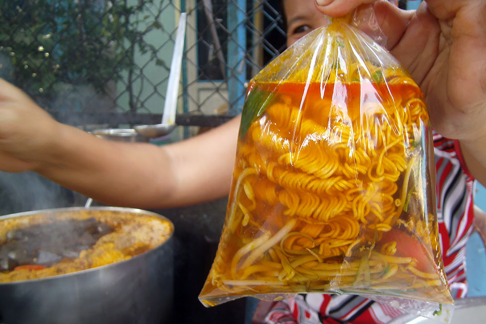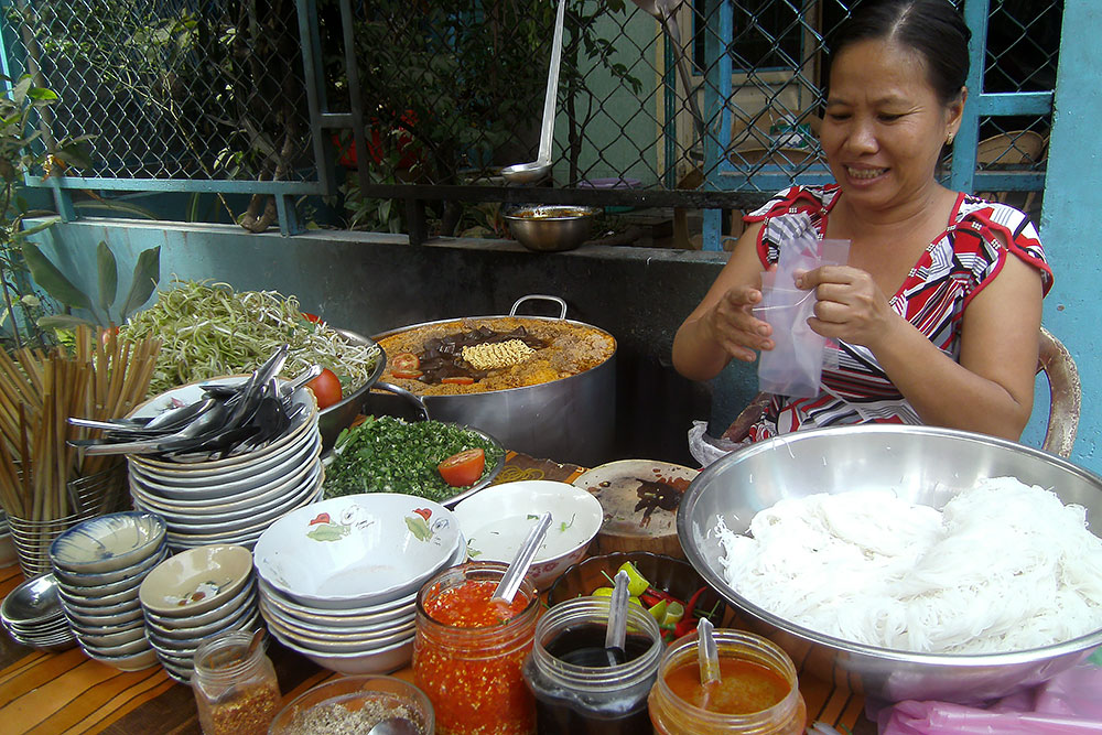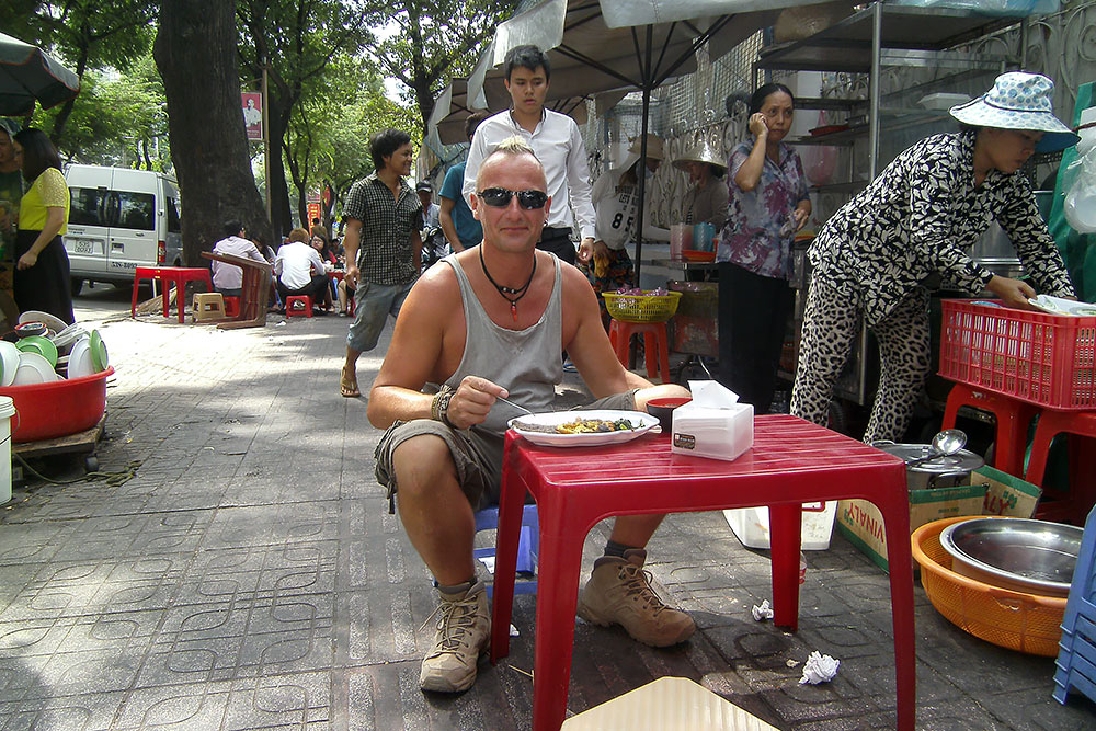 unter den Augen der Einheimischen und die leckere Suppe löffle, tritt