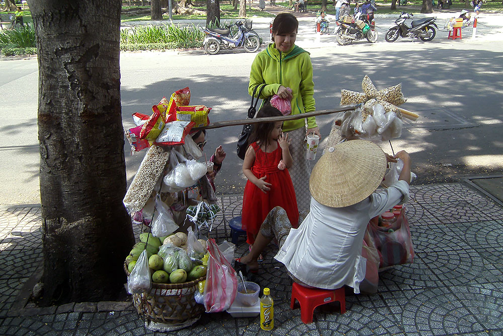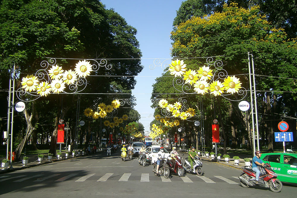 Kriegserklärung hat es nämlich nie gegeben. „Im Jahr 1954 führten ideologische Spannungen innerhalb des Landes dazu, dass sich Vietnam in einen nördlichen und einen südlichen Staat aufspaltete. Die kommunistische Viet Minh wurde zum Vietcong, der in der Folgezeit versuchte, das abtrünnige Südvietnam wieder unter die Kontrolle des Nordens zu bringen. Während die Ostblockstaaten auf den Anschluss weiterer kommunistischer Satellitenstaaten spekulierten, befürchtete die US-Regierung unter Präsident Harry S. Truman eine Kettenreaktion in Indochina: Mit einem eventuellen Sieg der Viet Minh könnten auch die Nachbarländer Laos, Kambodscha und Thailand von kommunistischen Revolution bedroht sein. Deshalb entsandten die USA ab 1965 Bodentruppen nach Südvietnam, um ein Vorrücken der Vietcong zu verhindern. Bis 1969 erhöhte die amerikanische Regierung schrittweise die Truppenstärke auf 500.000 Soldaten. Dagegen wurde der kommunistische Norden von der Volksrepublik China und der Sowjetunion mit Waffenlieferungen unterstützt. Die Sowjetunion selbst entsandte keine Soldaten nach Vietnam, weshalb der Vietnamkrieg auch als Stellvertreterkrieg zwischen den USA und der Sowjetunion gilt. Beide Nationen versuchten ihre Einflussspähren zu erweitern, ohne dabei selbst gegeneinander zu kämpfen. In dem zwanzigjährig-andauernden Vietnamkrieg starben zwischen drei und vier Millionen Vietnamesen, darunter mehr als 75% Zivilisten (!). Das US-amerikanische Militär verzeichnete etwas mehr als 55.000 Tote. Nach dem Rückzug der USA aus Indochina wurden drei Staaten (Vietnam, Laos und Kambodscha) kommunistisch und wendeten sich dem Ostblock zu." Den Kopf voller Gedanken über fehlende Bildung, fehlende Solidarität, fehlende Gerechtigkeit, aber schier endloser Gier nach Konsum, und dem Bazillus Religion in dieser Welt, schaue ich mir Ho Chi Minh City an. |