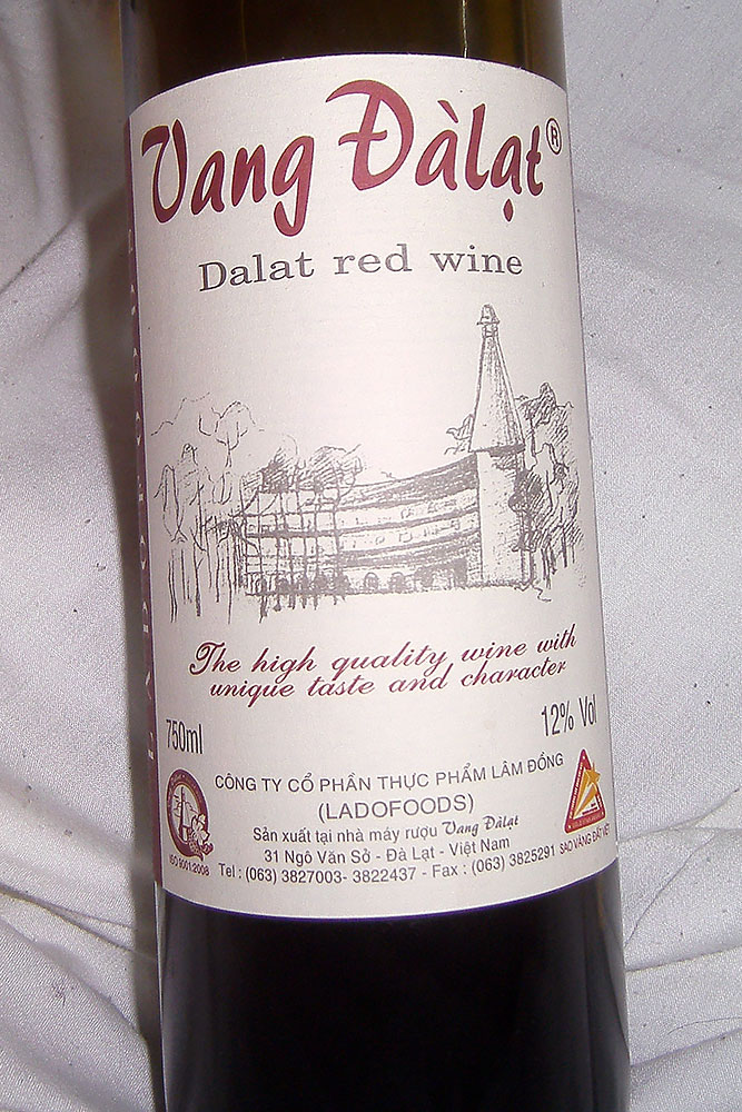 Vang Dalat mit einem Siegel für "High Quality Vietnamese Goods", den