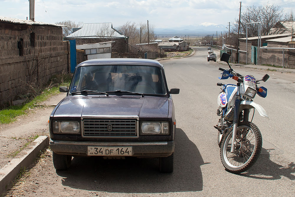 ASIEN ARMENIEN BAVRA 18.04.2015 Die Gebühr für den Customer-Service hatte ich ja nun nicht mehr zu entrichten aber jetzt wurde ich noch nach einer Versicherung gefragt. Äh wie, was, warum, wofür? Mein Herr, ich fahre schon seit 10Monaten durch die Welt und dies fast ausschließlich ohne Versicherung, da werde ich doch auch in Armenien keine brauchen oder!? Ja aber die Polizei, die wissen das genau, die machen Ärger, wollen viel Geld bla, bla, bla... OK, hör auf, wie viel willst du? Fünf Zigaretten später auf dem Sofa sitzend, drückte ich rund 30,-€ ab, auch für 15Tage und konnte endlich starten (hatte ja 55,-€ gespart). Will gar nicht wissen, wie viel sie für Mammut an Beitrag genommen hätten. In dem grünen Heft von der heimischen Versicherung ist Armenien nicht mit aufgeführt und das wissen die Säcke genau! Ich kam mir vor wie in den Alpen, nur abseits des Weges. Die Landschaft ähnelte diesen wirklich sehr, doch führte nur eine Motocross-Strecke durch das Land, was für ein Glück, dass ich mit Susi unterwegs war. Froh nun ausreichend versichert zu sein, falls ich einem Lada die Stossstange zerkratze, jagte ich los. ![]() GJUMRI Holte in Gyowmri (Gjumri oder Gyumri) noch etwas Geld von der Bank, um den Tankwart nicht zu bestehlen und fragte eine ältere Dame nach dem Weg. Meine Karte konnte sie nicht entziffern, da stand nichts russisches drauf aber nur da könnte es lang gehen, ganz sicher. Ein paar Kilometer weiter noch einmal einen jüngeren Herren gefragt aber der war sich dann nicht mehr ganz so sicher, wo lang es zum größten Binnengewässer des Landes geht, das keine 200km von dort entfernt sein konnte aber da lang und dann rechts. Nach weiteren 40km war sich einer sicher und teilte mir mit, dass ich falsch fuhr. ![]() Also wieder zurück über oder besser durch die Bombenkrater und nochmal von vorn und dann überwiegend nach Instinkt. Der nächste Taxifahrer wollte lieber Geld für seine Information aber ein dicker Kerl mit Wodkafahne gab meinem Instinkt recht und nach drei mal blitzen (ungelogen) zum Glück aber nur von den stationären Dingern, befand ich mich Zielgerade auf dem Weg nach Vanajor (Wanadsor oder Vanadzor). |