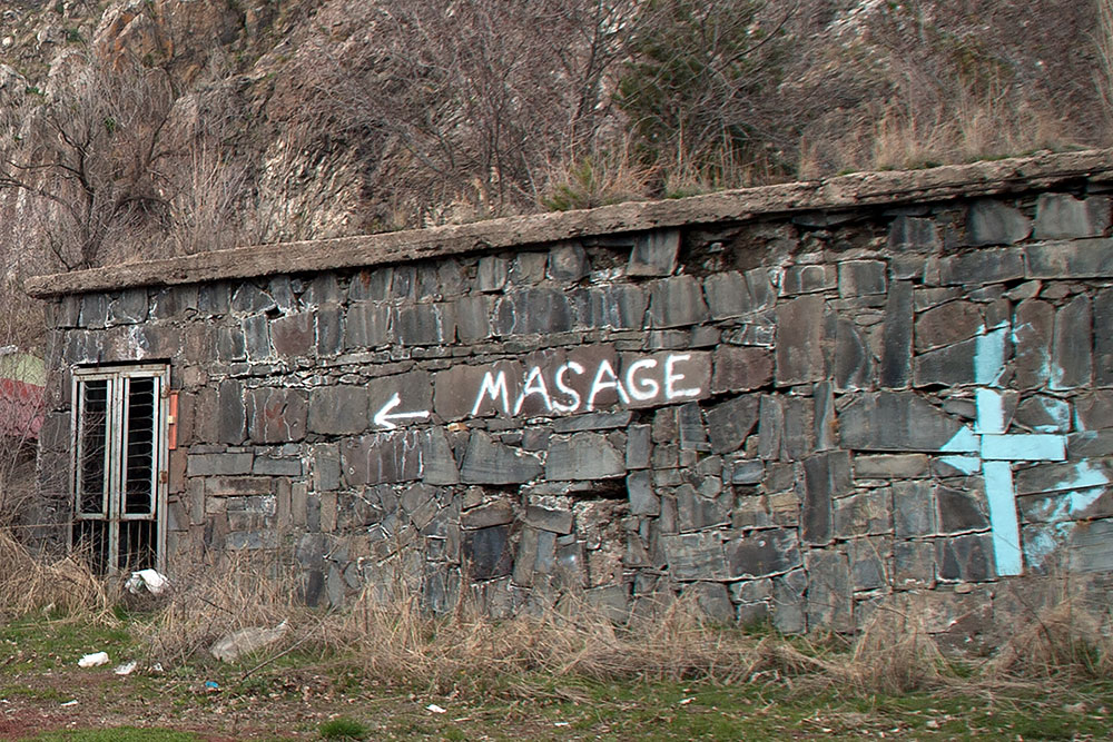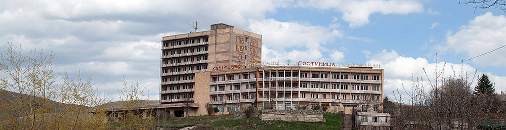 | Von dort aus nach fünf mal fragen auf dem Weg zum Dilijan Nationalpark. War Armenien sonst auch nur im schönen grau gehalten, hatten dort im Park ein paar Multis sogar Farbe an ihre Hotels pinseln lassen. Und man kann es fast nicht glauben, dort wo die Touristen waren, gab es auch ein Schild auf dem so etwas wie Richtung „Sevan“ stand (anders übersetzt halt). Sonst gab es weder an den Kreuzungen, noch an den Kreisverkehren welche, auch an den Strassen nicht. Erst wenn man den jeweiligen Ort erreicht hatte, konnte man auf einem Schild lesen, ob man dort richtig war. |