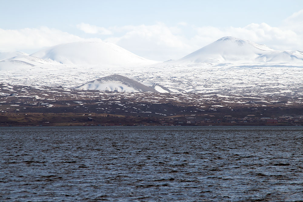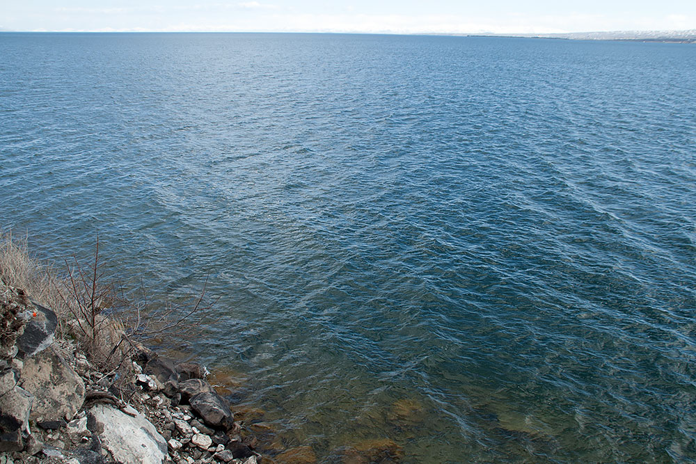 lic“ ohne im Park einen Bären überfahren zu haben. Der Süßwassersee war riesig, glasklar und von weißen Bergen umgeben. Geschäft wird dort wohl nur im Sommer gemacht aber drei frisch geräucherte Fische konnte ich dort dennoch ergattern. |
