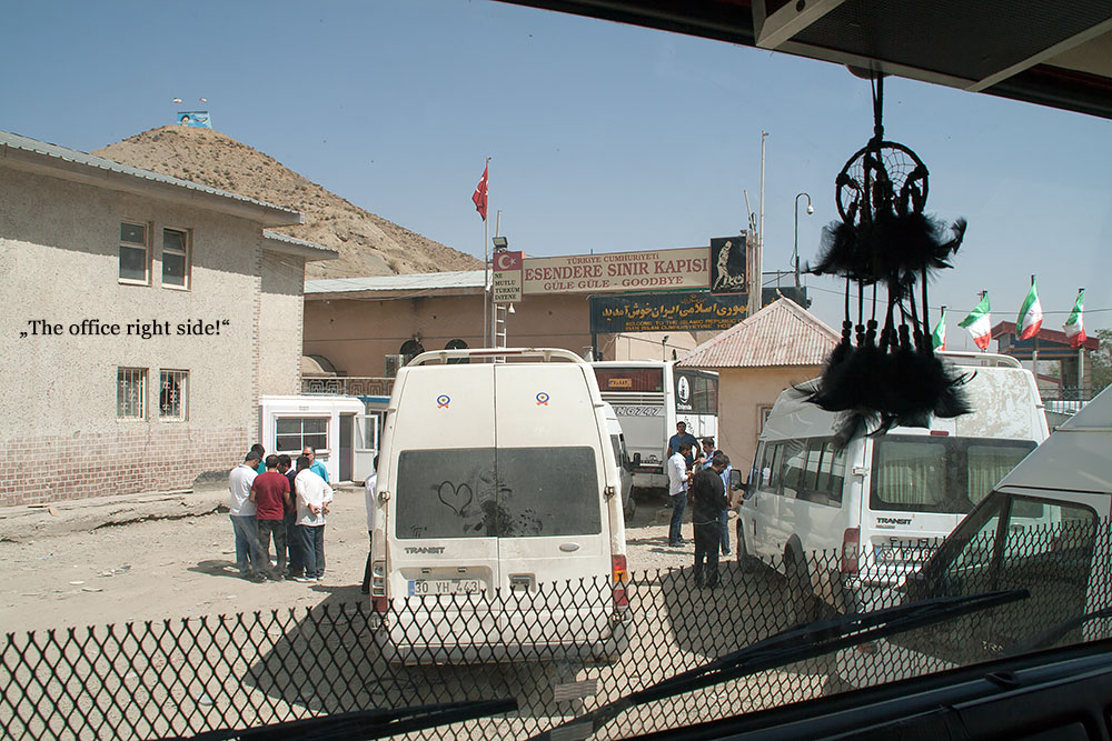10:00Uhr morgens machte ich mich auf in den Kampf. Es war nur ein kleiner Grenzübergang aber geschätzte hundert Fahrzeuge standen davor und wollten von allen Seiten durch das Nadelöhr der Baustelle. Ein Iraner war so freundlich und liess mich in die Reihe, mit Hilfe von drei anderen, die mich in Millimeterarbeit einrangieren halfen. Zwei Stunden später stand ich vor dem türkischen Grenztor. Ich gab dem Beamten meinen Pass plus Fahrzeugpapiere worauf er mir mitteilte, dass ich einen Stempel in meinem Pass bräuchte. „Einen Stempel? Ich bin doch deutscher Staatsbürger, wo soll denn da ein Stempel von der Türkei rein?“ fragte ich ihn. „Tino, you need a stemp in your Passport. Please go in the office right side!“ sagte er darauf und Tino ging in „the office right side“.