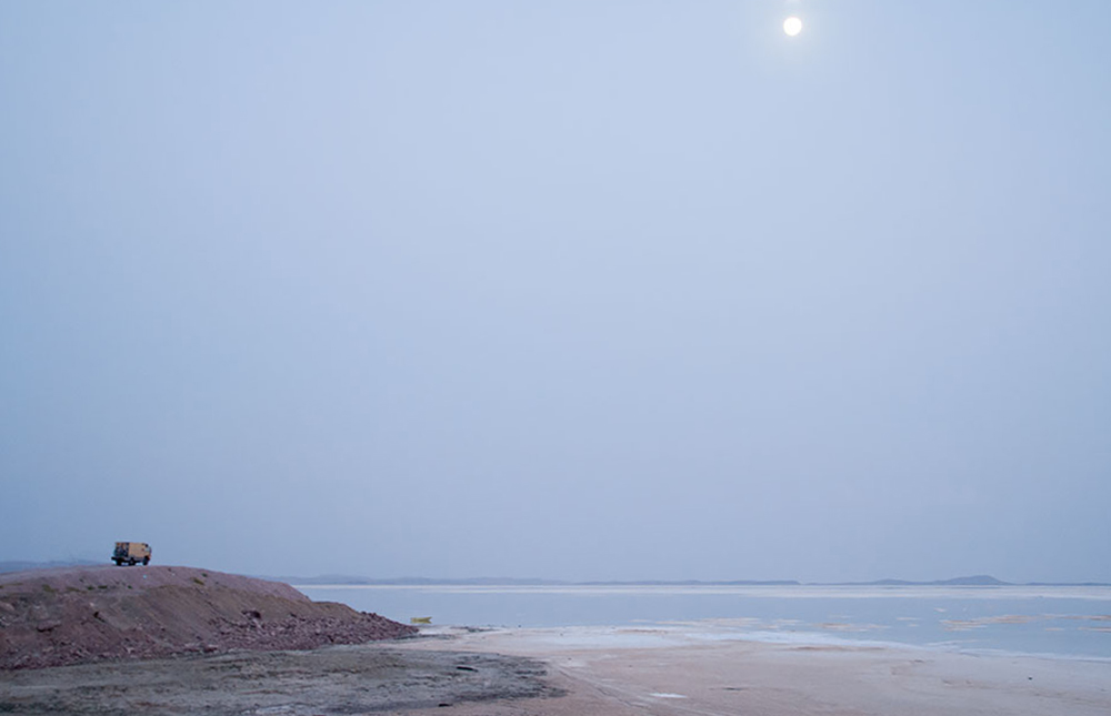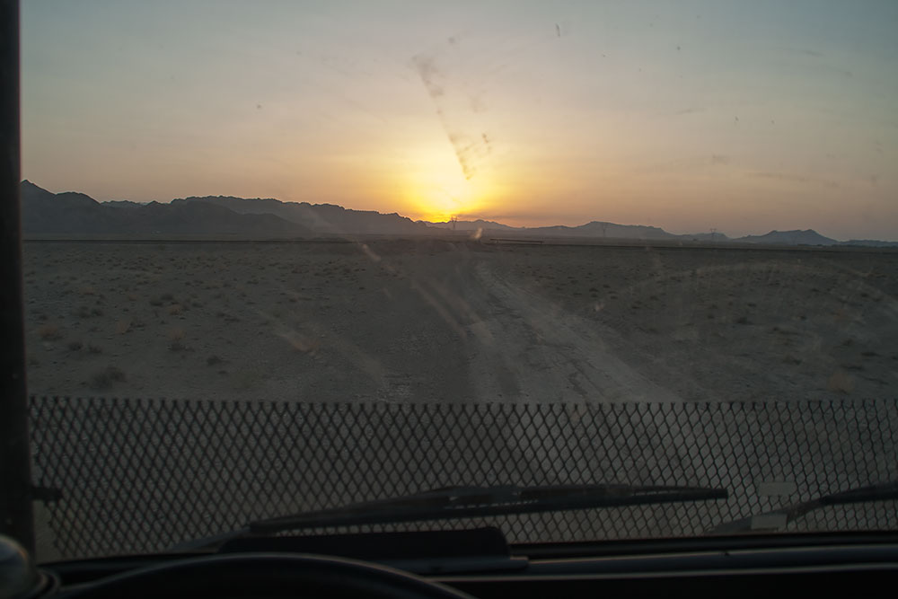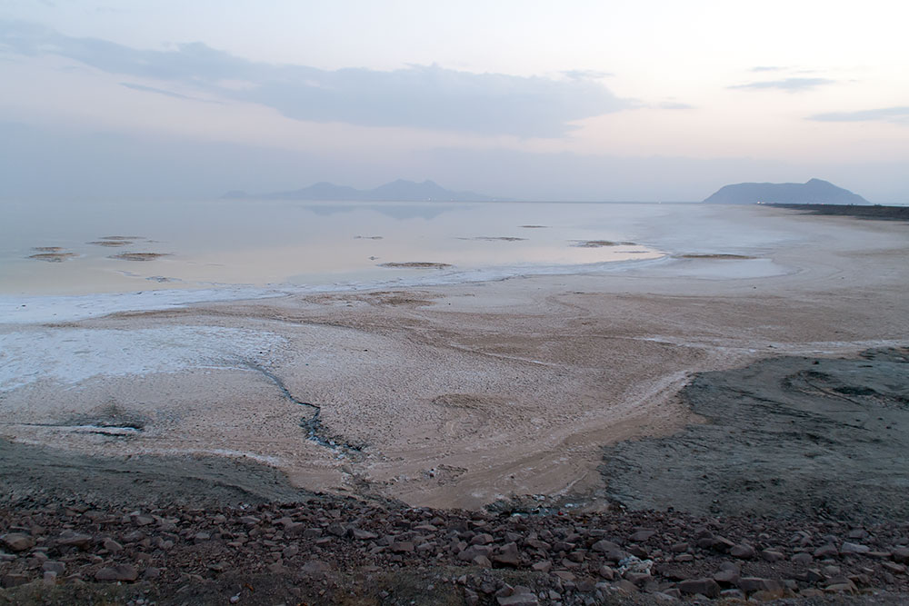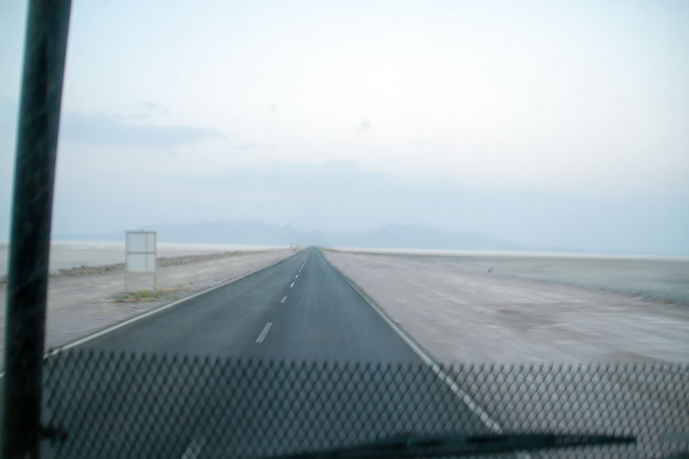 Am späten Abend fuhr ich dann über das größte Binnengewässer des Irans, dem Orumiyeh-See. Er ist fast sechsmal größer als der Bodensee und es führt ein 15km langer Damm darüber, mit einer 1,3km langen Brücke. Sie wurde gebaut, damit sich die Wassermassen des nördlichen und südlichen Seegebiets austauschen können. Es war ein tolles Erlebnis, denn Wasser war kaum da, dafür jede Menge abgelagertes Salz, das mit dem Horizont verschmolz.
