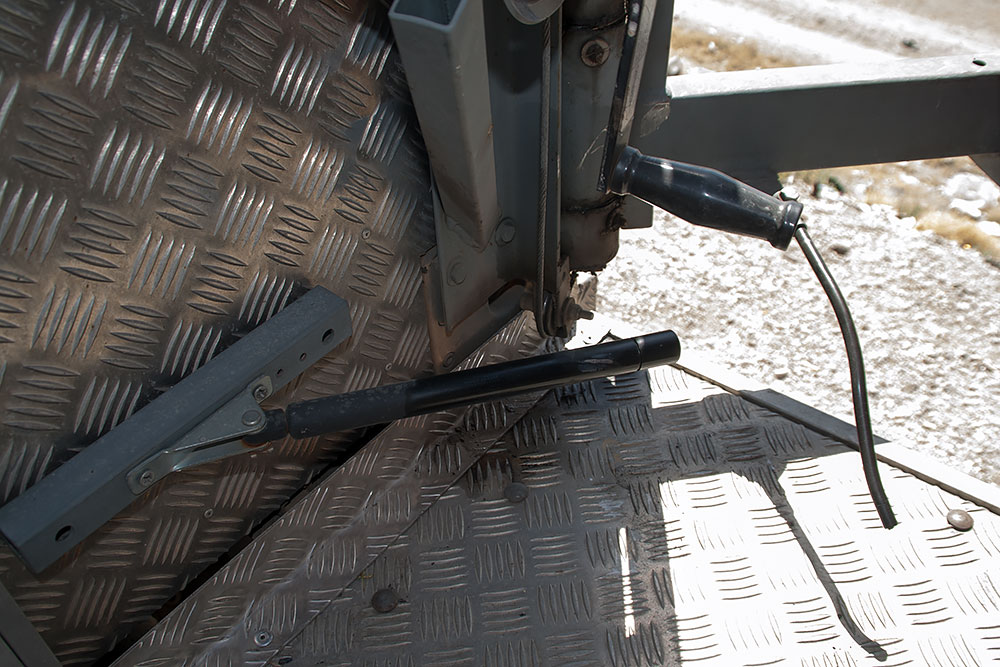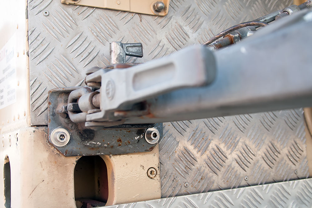 Nachdem alles gesagt war, hieß es: „Open!“. Ich fragte womit ich beginnen solle, ob sie erst alle Staufächer außen durchwühlen oder lieber erst innen das Bettlaken lüften wollten. Sie zeigten auf ein Staufach und ich öffnete es. Dies war voll mit Schmiermitteln, Fett, Öl, Putzlappen und sonstigem. Das war nicht so spannend und auch noch schmutzig, dann doch lieber erst den Innenraum.