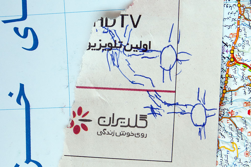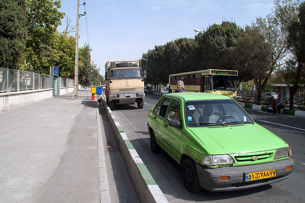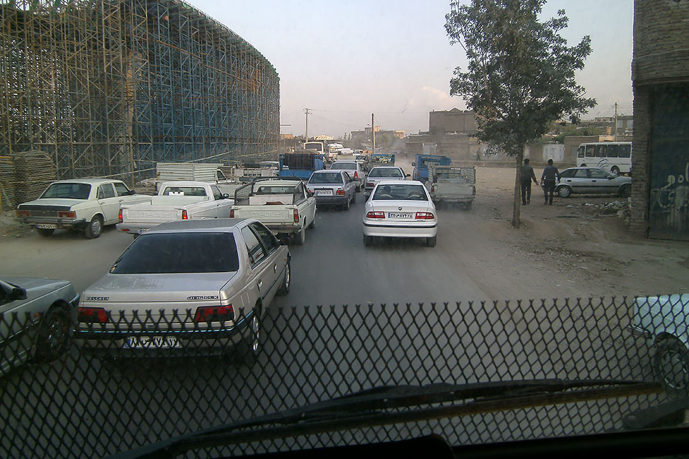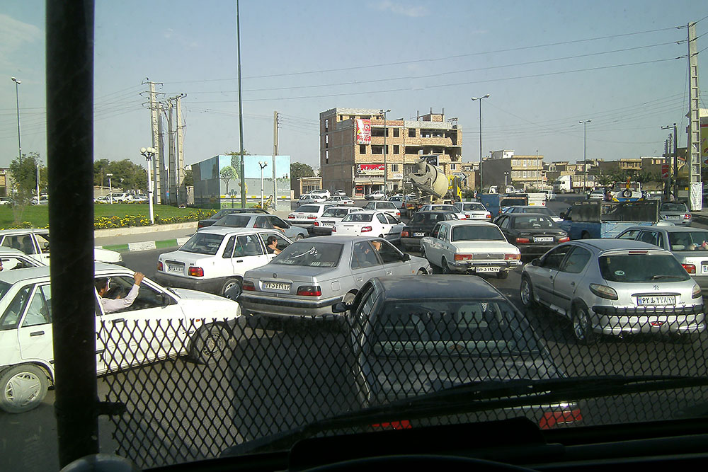 Ich folgte seiner Wegbeschreibung und landete im Nichts. Nachdem ich ausgestiegen war, umzingelte mich eine Horde Iraner und sie plapperten auf mich ein. Der eine von Ihnen hatte keine Zähne mehr, sprach aber am lautesten und bespuckte dabei meinen linken Arm aber ich stand dichtgedrängt und konnte nicht fliehen. Ich zeigte meinen Zettel, worauf sie einen Alten herbei holten, der einen anderen den Auftrag gab, mich zu begleiten und wir fuhren los. Quer durch die Stadt in entgegengesetzter Richtung, verstopften im wilden Wendemanöver mehrmals den Verkehr und parkten mitten auf einer Nebenstrasse.