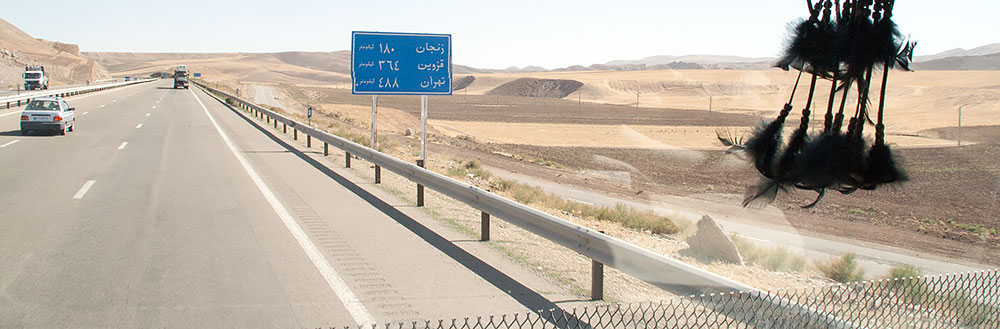Das konnte nur ein Witz sein, wie in einem schlechten „Miami-Vice-Film“ aber es war keiner! Nach ewigen hin und her, Passkontrolle und den üblichen Fragen, liess er mich aber ziehen. Nur raus aus dieser Stadt ging mir mal wieder durch den Kopf und ich raste los. Laut meiner arabischen Karte, verglichen mit den paar Angaben im Reiseführer, führten zehn (!) Strassen aus der Stadt von denen nur eine richtig sein konnte. Ich fand nach Ewigkeiten sogar ein Schild, auf dem „Tabriz“ stand, in die Richtung in die ich wollte aber nicht die Strasse dazu.