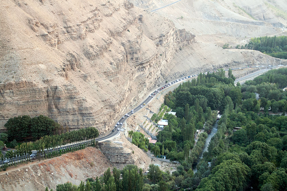 In „Rash“ begann endlich die Schnellstrasse nach Teheran aber nicht für uns! LKW haben im Iran auf allen Schnellstrassen, auf den meisten Autobahnen und fast überall in den Städten nichts zu suchen. So ging die Fahrt weiter über heruntergekommenen Holperpisten, auf denen es nur selten eine Fahrbahnmarkierung gab und sich ein Loch an das andere reite. Einschlafen war da unmöglich, denn es knallte und polterte die ganze Fahrt über. Natürlich gingen diese Pisten dann auch immer durch die kleinen Ortschaften, in denen Bodenwellen in den Asphalt gegossen waren. Eine Tortur war das! In „Qazvin“ konnte ich aber auf die Autobahn, die von West nach Ost einmal durch das Land führt und gab dann ca. 100km vor Teheran morgens um 05:00Uhr auf. Ich übernachtete auf einen Parkplatz, direkt an der Bahn und kam am Sonntag den 14.09.2014 vormittags in Teheran an.