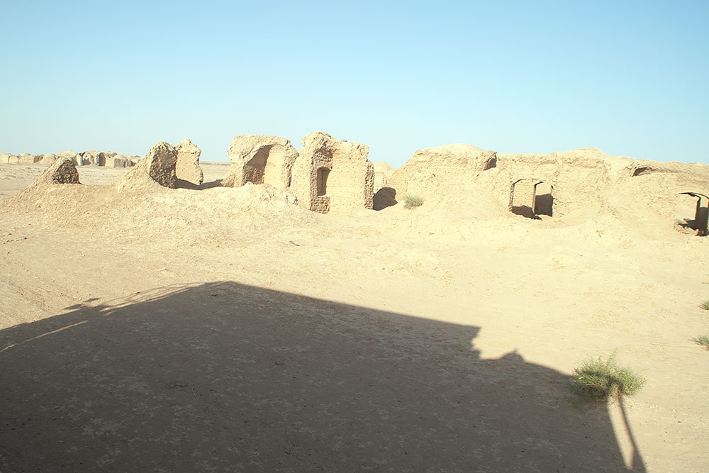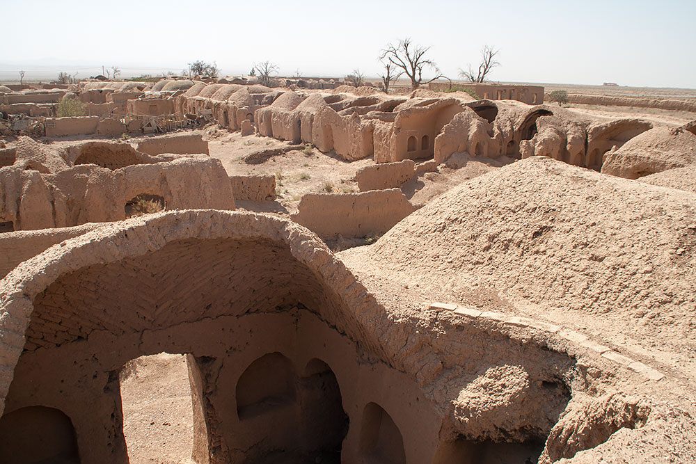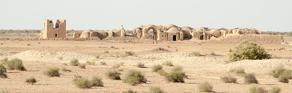 Es ging weiter in den Süden nach „Kashan“ wo ich noch einmal für 70,-$ die Tanks voll laufen lies und fuhr von dort aus über die etwa 12km nördlich gelegene Stadt „Aran“ in die Salzwüste. Dort entlang des grossen „Daryacheh-ye Namak“ Salzsees, auf den Spuren des alten Karawanenweges. Auf Pisten und offroad war es ein atemberaubendes Erlebnis, durch den zu dieser Jahreszeit ausgetrockneten See zu fahren und in der Wüste immer wieder auf alte verlassene Karawansereien zu stoßen. Die Hitze war durch leichte Winde gut zu ertragen und die Einsamkeit dort draußen gefiel mir sehr.