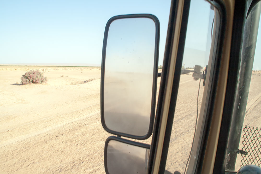 Die Fahrt ging in nordöstlicher Richtung quer durch die Wüste und über eine Gebirgskette. Die erste Nacht verbrachte ich auf einen Rastplatz, die zweite direkt an der Strasse gegenüber einer Polizeistation. Da ich noch ein paar kleine Dörfer besichtigen wollte, fuhr ich auf Landstrassen zur Grenze, was eine ziemliche Herausforderung für Mensch und Maschine war aber ich wurde belohnt.