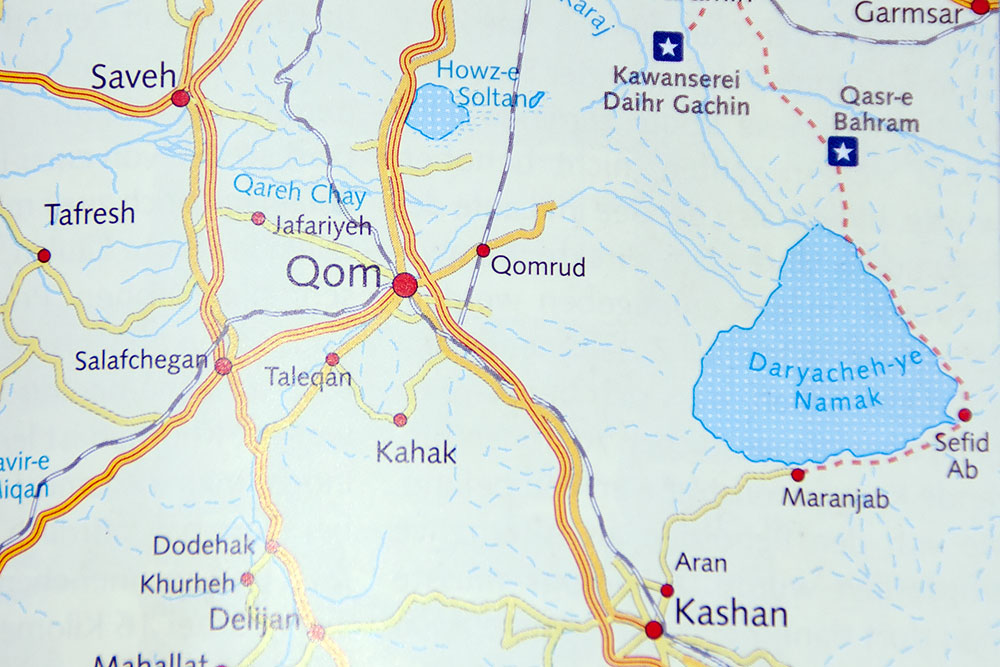 Die Autobahn dorthin war mal wieder für LKW gesperrt und ein Polizist sagte mir, dass ich die „old road“ westlich von Teheran nutzen müsste. Auf der Suche danach, kreuzte ich noch weitere vier Stunden durch die Stadt, gab dann endlich auf und fuhr einfach auf die „new road“! 110km waren es bis „Qom“ und die ganze Strecke dorthin, war die „new road“ mit Laternen beleuchtet. Alle 50m stand eine auf dem Mittelstreifen, jeweils mit  zwei Lampen, macht 2.200Laternen mit 4.400 Lampen.