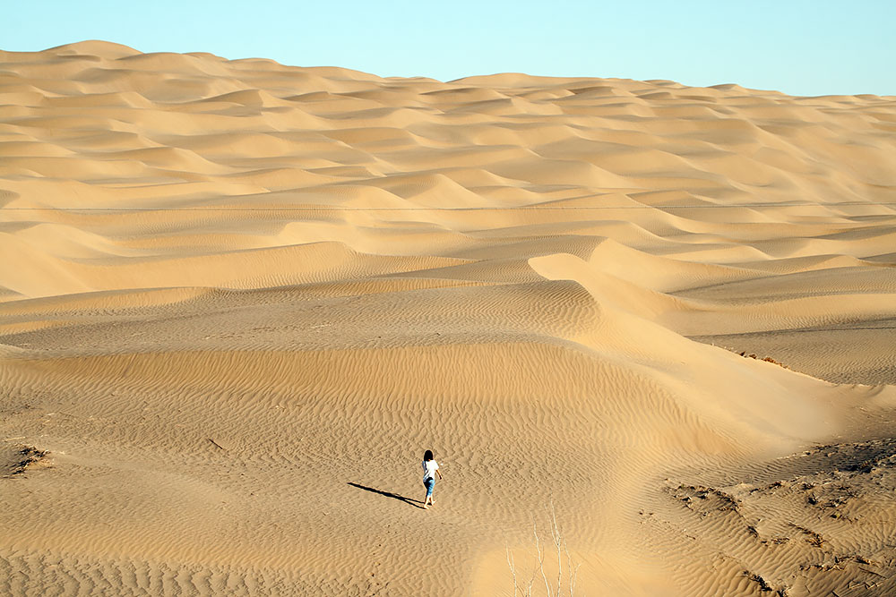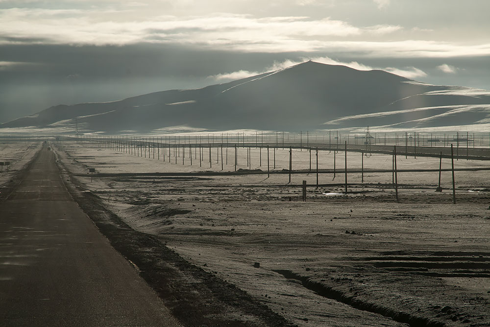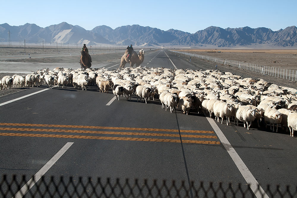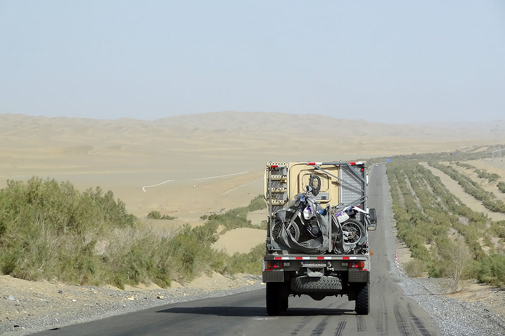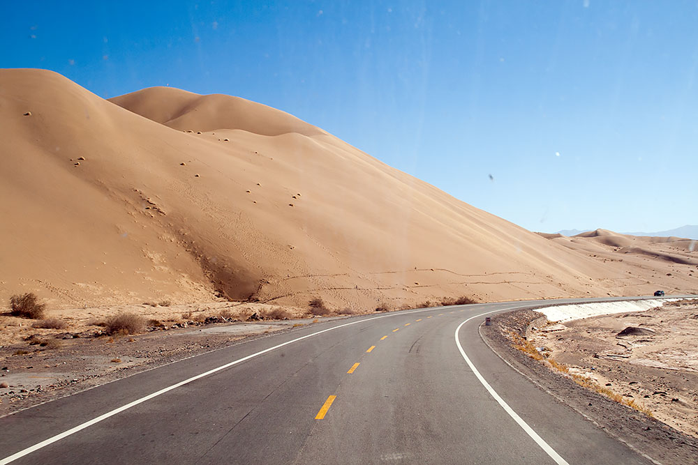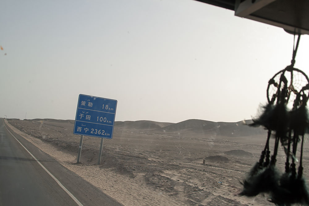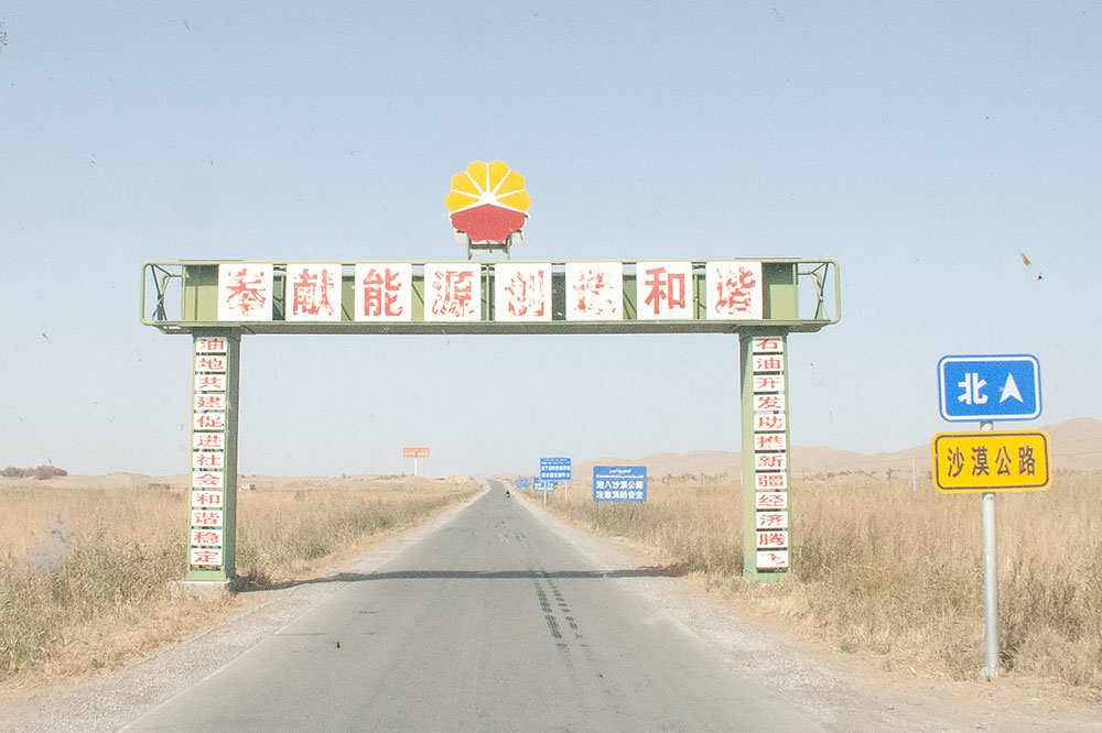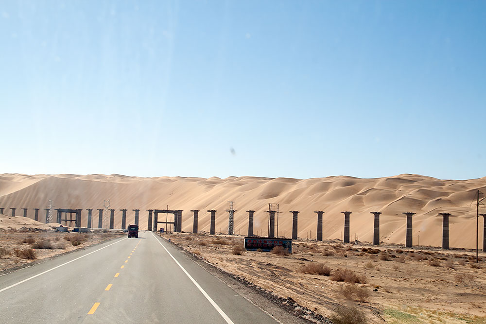 durch die Taklamakan-Wüste. Die Strasse wurde gebaut um die dortigen