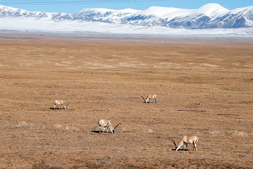 an Tibetischen-Antilopen, Yak-Rindern, Füchsen und Wildesel, räucherten