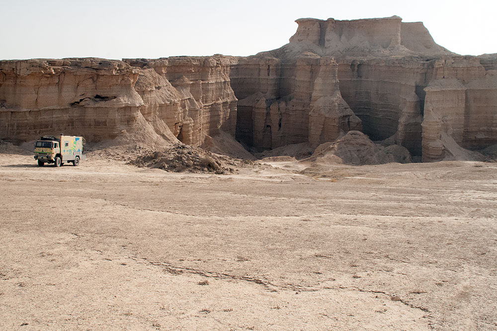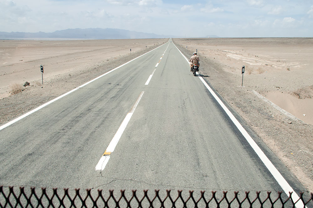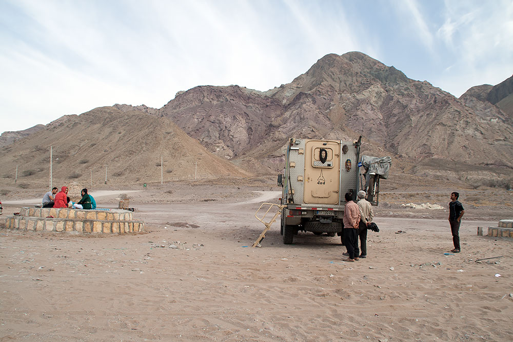 Etwas später kam noch einmal die Frage, ob sie uns nicht doch lieber noch nach Bam bringen sollten. Wir verbrachten aber die Nacht ganz unbewacht vor Ort, draußen direkt an der Strasse, was wir schon von Anfang an machen wollten, nur eben 5h früher. Nichts passierte und ohne nervende Waffenhalter vor uns weg, kamen wir am nächsten Tag schon doppelt so weit, bis weit hinter Bam. Es war sicher alles gut gemeint von den Iranern und auch schon zuvor von den Pakistanis aber die Organisation war von beiden Ländern die reine Katastrophe.