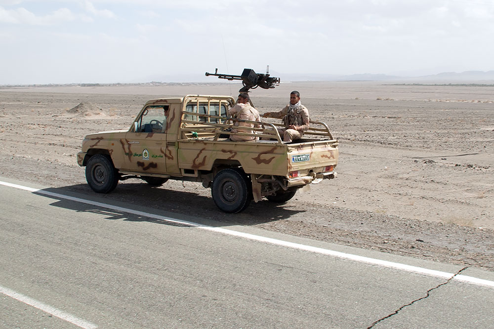 Egal, alles ging gut und auch hier wechselte ständig die Eskorte. Wir brauchten ewig, kamen abends an, wo wir mittags sein wollten, in der Stadt Zahedan. Ein neuer Pickup mit Helden des Kampfes kam angedüst und es sollte noch weiter gehen, bis in die Stadt Bam. Auf keinen Fall, wir fahren nicht nachts, dass könnt ihr vergessen, bekamen sie darauf von uns zu hören. Hier seid ihr nicht sicher, kam zurück. Dann sorgt halt dafür, entgegneten wir. Es ging hin und her, eine Diskussion entfachte. Wir nahmen ihnen fast gewaltsam unsere Pässe ab und sagten zum Schluss, macht was ihr wollt, die bekommt ihr nicht wieder und wir bleiben hier!
