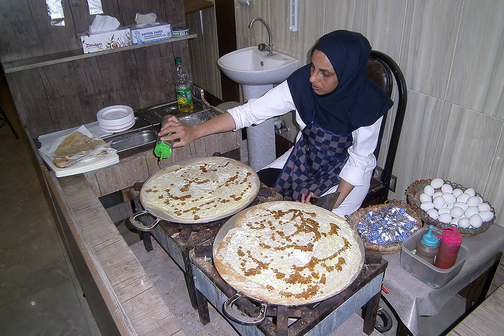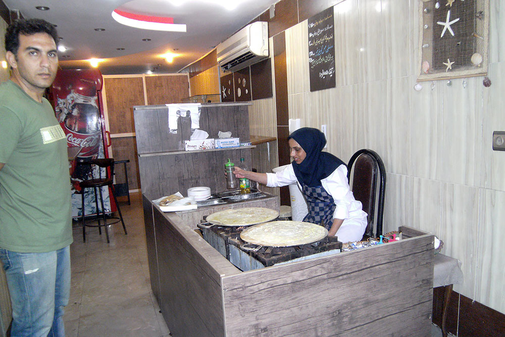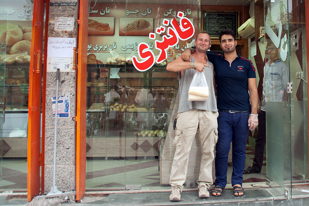 Hier mit Hadi beim Brot holen, dem besten und originalen "Bandar Abbas-Brot"