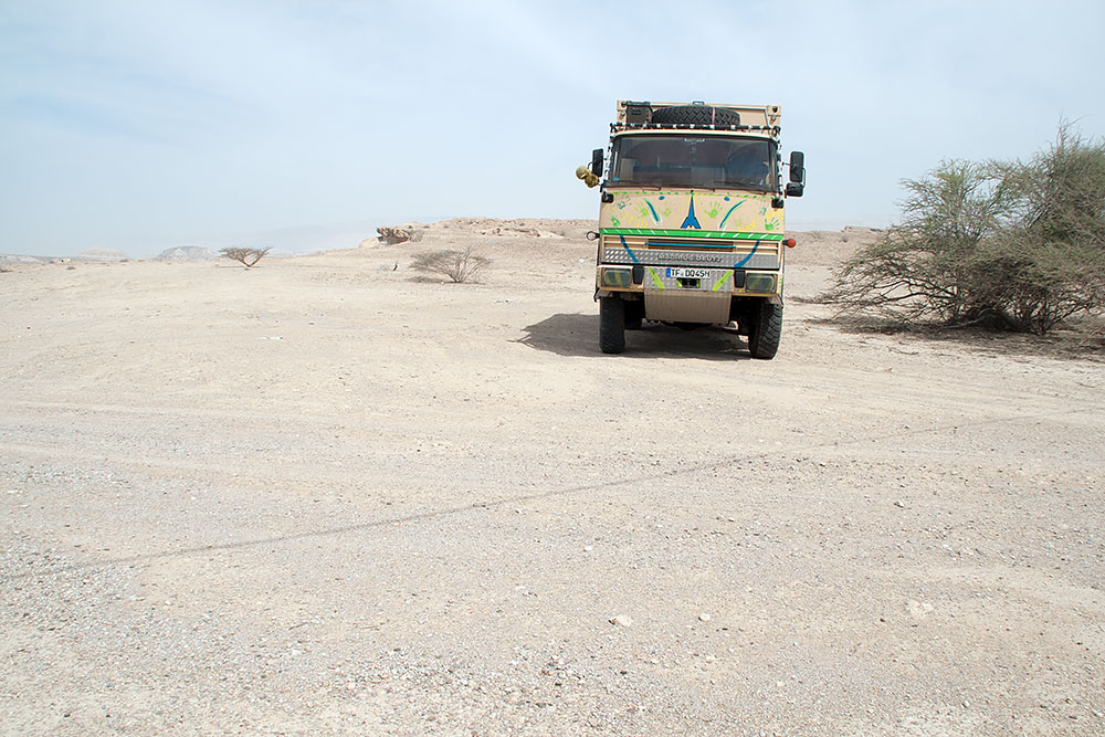 Nun entfaltete Mammut noch nie dagewesene Kräfte und das ohne ins Schwitzen zu kommen. Am Ölverlust waren nur ein paar O-Ringe schuld, die aber in Bandar Abbas nicht passend aufzutreiben waren, was aber auch kein großes Problem darstellte. Um diese und der Reparatur der Luftleitung plus Handbremse, wollte ich mich dann in Esfahan kümmern, wo es mehr Ersatzteilhändler gab.