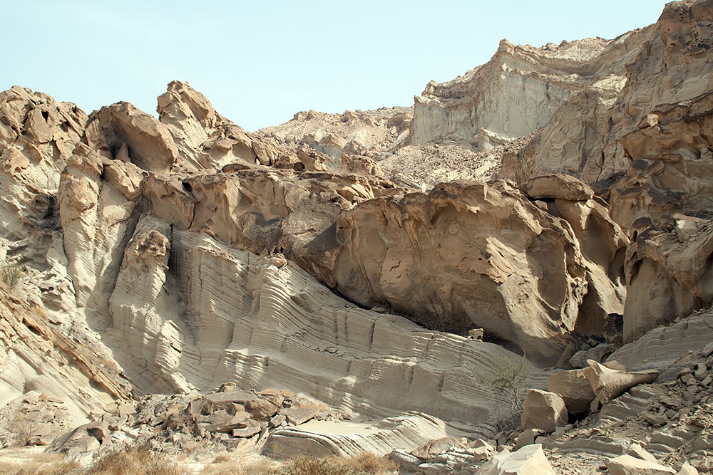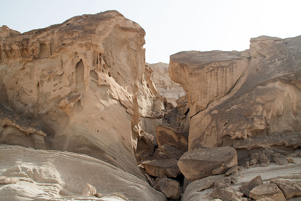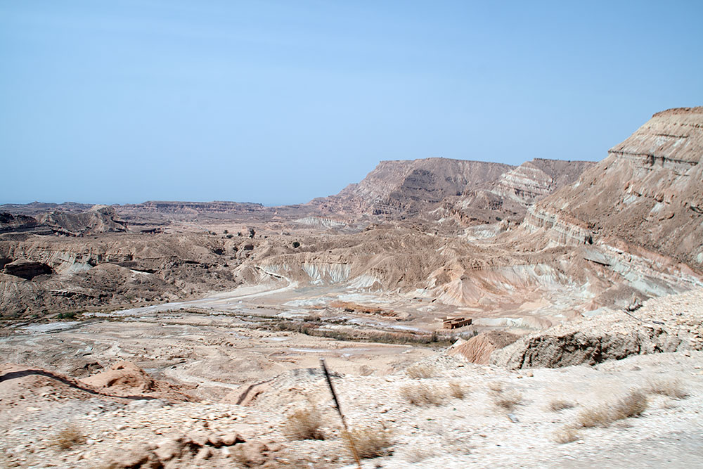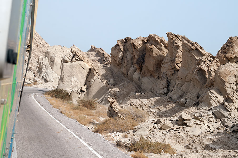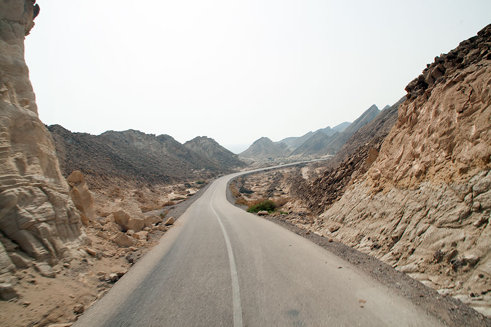 Verlässt man ca. 100km vor der Stadt Delvar die Schnellstrasse Richtung Küste, hat man die Möglichkeit, zwischen dieser und der Küstenstrasse noch eine weitere Route, direkt durch ein Canyon zu nehmen. Das diese Felsschlucht oder dieses Gebiet bizarrer Felsformationen in meinem Reiseführer, der immerhin 560Seiten umfasste, nicht erwähnt wurde, fand ich ziemlich traurig. Wenn auch nur ein Stein einer alten Moschee irgendwo liegt, findet er Erwähnung aber ein so traumhaft geschaffenes Bild der Natur erschien dem Autor wohl nicht interessant genug.