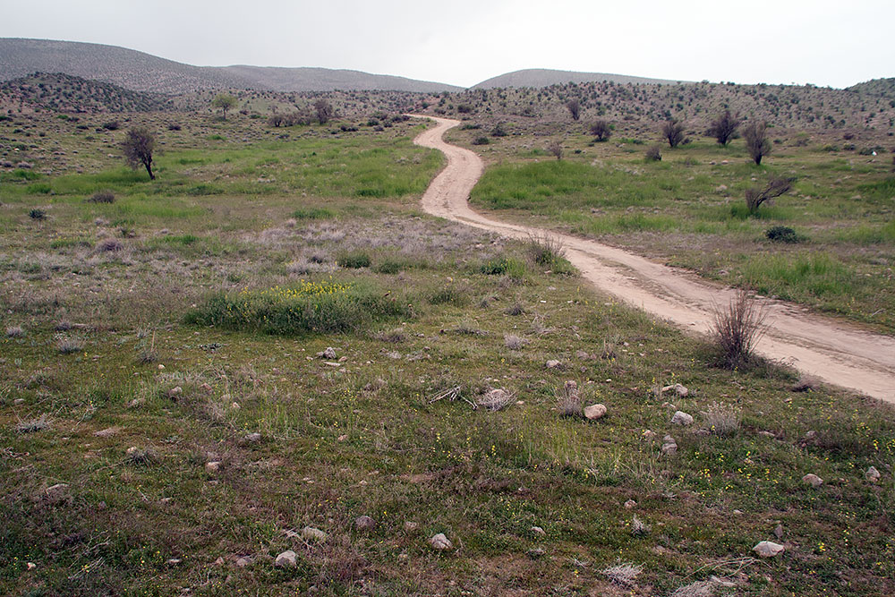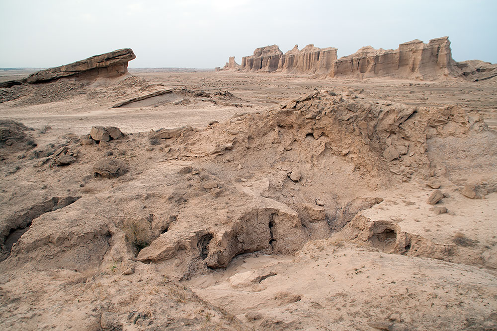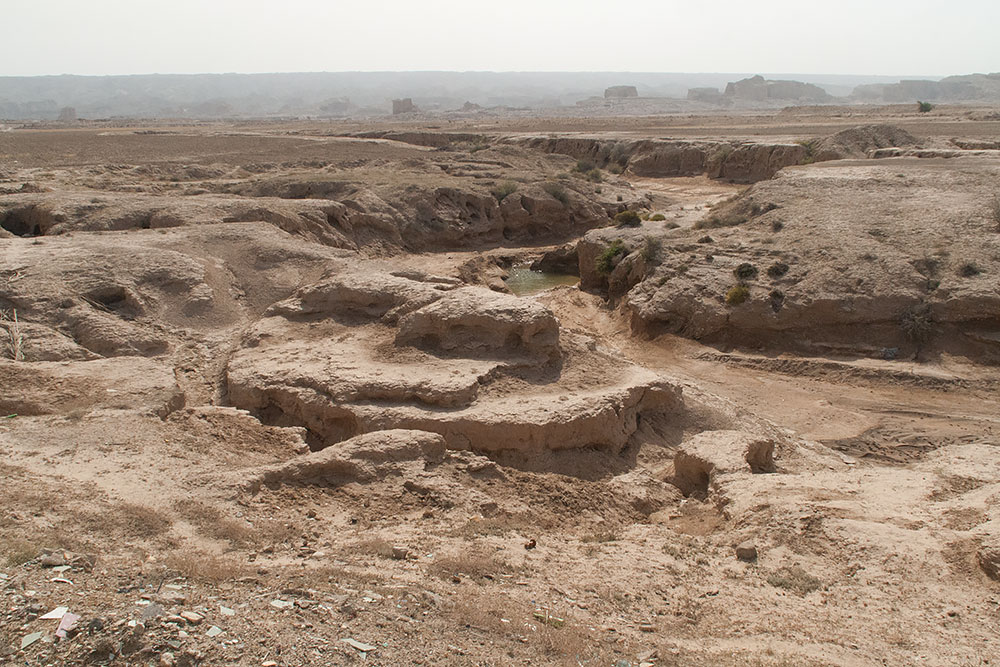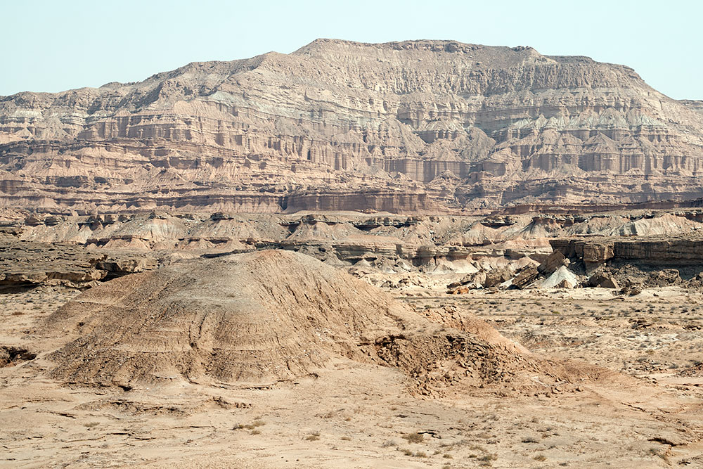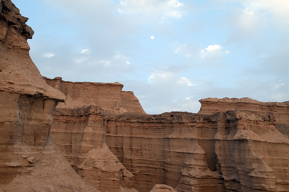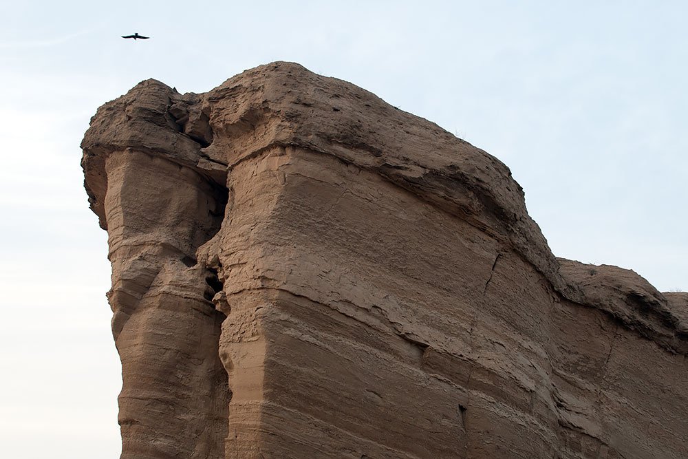 Schon in der Stadt Delvar angelangt blickte ich noch einmal auf eine Formation, die vom letzten Abendlicht beleuchtet, sich am Horizont erstreckte. Ich versuchte ihr näher zu kommen, um ein paar Fotos davon zu machen, fand aber keinen Weg durch die Stadt dorthin. Ein Mann auf seinem Motorrad sah mich mit dem Fotoapparat auf einer Anhöhe stehen und wusste sofort was ich wollte. Er fuhr voran und brachte mich offroad durch das Gelände zu den Felsen.