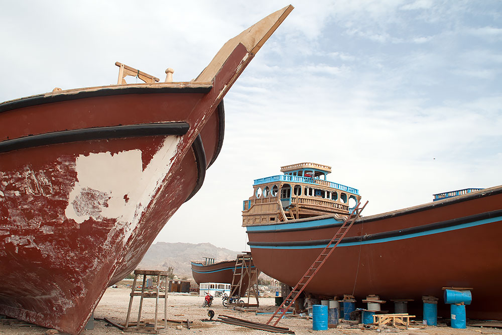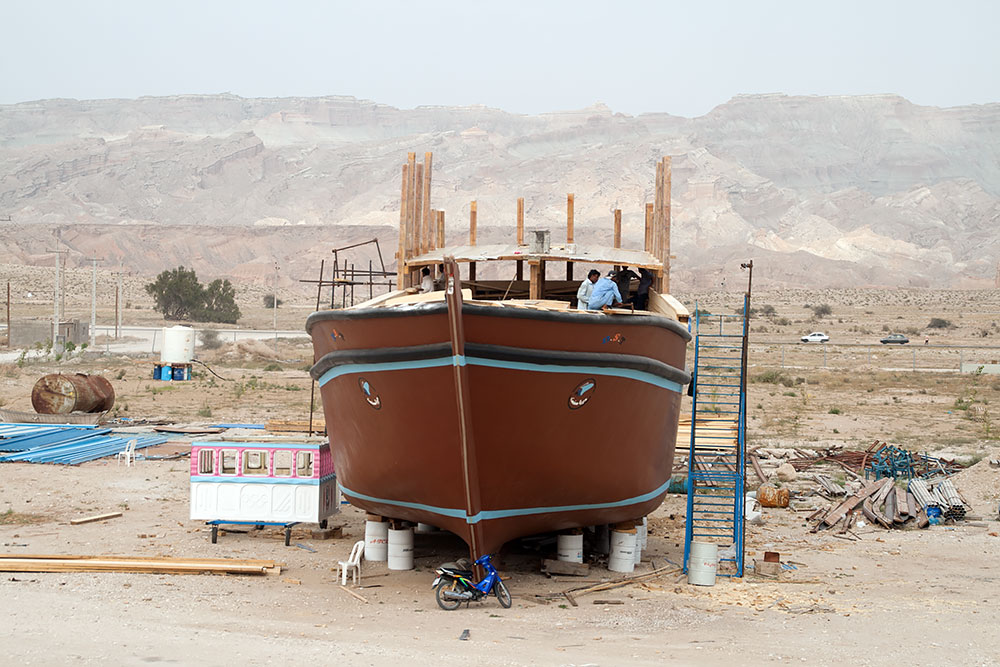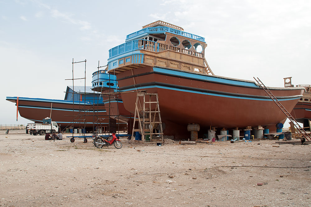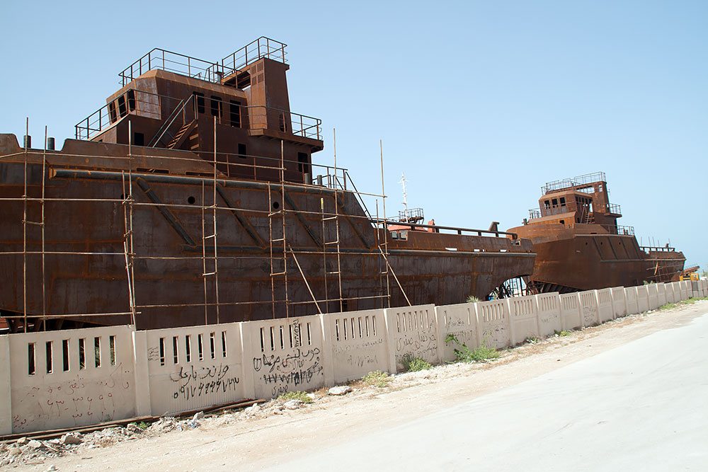 Da ich auch vom Persischen Golf noch nicht genug hatte, fuhr ich noch einmal zur Küstenstrasse runter und diese dann ca. 100km in entgegengesetzter Richtung (Richtung Bandar Abbas) und natürlich auch wieder zurück. Ich besichtigte ein paar Werften oder Schiffbaufirmen und genoss die einsamen Strände, bevor ich die 270km Bergtour von Bushehr aus, zu der auf 1.540m Höhe gelegenen Stadt Shiraz zurücklegte.