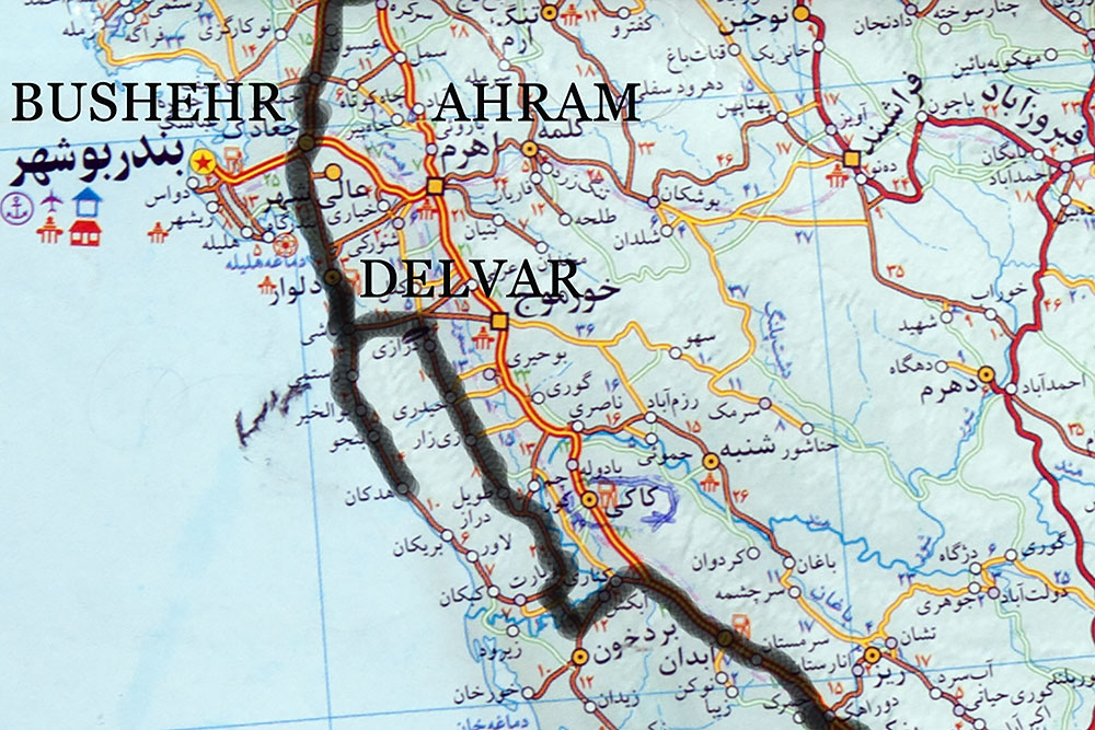 An der Küste entlang fuhr ich weiter, zu der etwas über 900km (auf der Schnellstrasse) entfernten Stadt Bushehr. Um dem Meer aber noch etwas näher zu sein, fuhr ich teils auf Landstrassen einen etwas längeren Weg und bereute dies nicht!