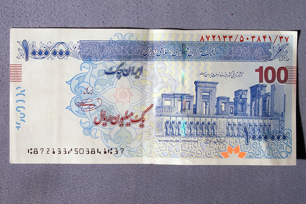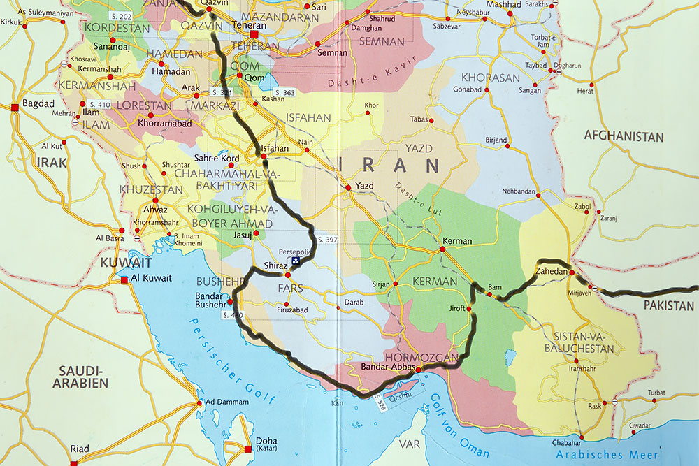 Für einen Reisenden gehört es natürlich zum Schlimmsten, wenn daheim die Währung fällt. Das der Euro so drastisch in den Keller gerauscht war machte sich nun bemerkbar, als ich für die getankten 410Liter Diesel fast 0,13€/Liter blechen musste. Genau genommen 1.800.000,-Rials oder 52,17€ was für eine Schande! ;-)