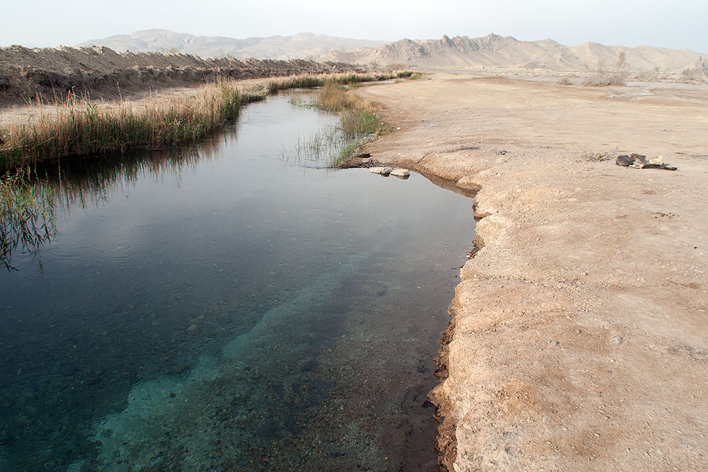 Nach ein paar Kilometern holten mich die drei auf einmal ein. Sie hätten sich überlegt, da der eine an diesem Tag seinen zwanzigsten Geburtstag hat, würden sie mitkommen, um diesen dort zu feiern. Da der See in der Nacht eh nicht mehr zu sehen war, führten sie mich an einen nahe gelegenen Fluss. Es sah aus wie ein Graben und ich fragte sie, ob sie mich veralbern wollen! Soll dies wirklich der von ihnen so hoch angepriesene schöne Platz sein? Er war es! Im Graben floss kristallklares Salzwasser, das keine 100m entfernt in einem 40m tiefen Teich aus der Erde sprudelte.