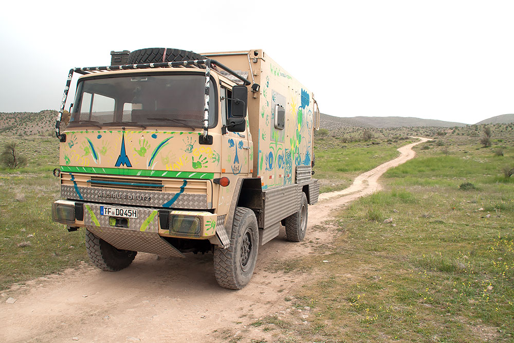 Der Ältere davon, plus Vater kamen hinzu und lauschten den Klängen, die Mammuts sechs Zylinder von sich gaben. Öl, Diesel und Luft, alles wurde überprüft, viel gefachsimpelt, diskutiert und geschraubt, bis der Vater das Problem fand. Er, ein ehemaliger Ingenieur von Yamaha-Motors, den sie gerne nach Japan geholt hätten aber mit seiner Familie lieber im Iran blieb, fand die Ursache.