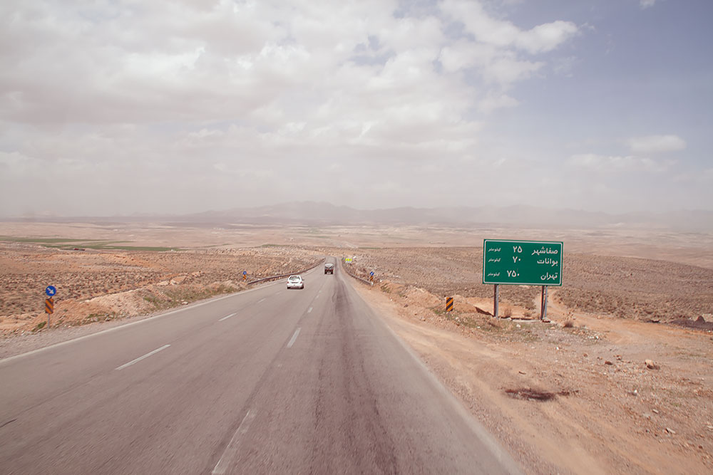 Von dort aus fuhr ich Richtung Osten zum Tashk-See. In der Stadt Arsanjan erkundigte ich mich nach dem Weg dorthin, worauf ein junger Kerl von 20Jahren zu mir in Mammut stieg und sagte, ich solle seinen Freunden folgen. Wir fuhren durch die Stadt und hielten auf einer Strasse, die mich zum See führen sollte. Es wären nur noch 55km und ich könnte ihn nicht verfehlen. Ich bedankte mich und obwohl es schon lange dunkel war, wollte ich diesen auch noch erreichen und fuhr los.