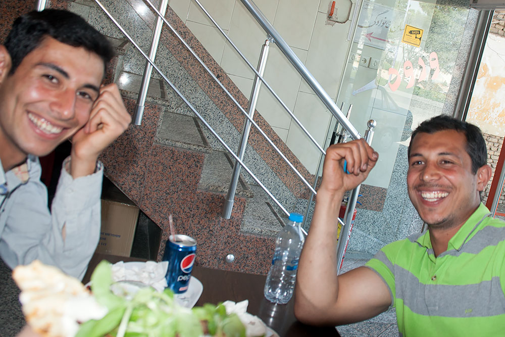 Die Sitzbank hatte starkes Gefälle und Arman das Bedürfnis zu zeigen, was aus seinem Knattergeschoss noch rauszuholen war. Wir jagten durch die Stadt und ich hoffte nur, Omid würde nicht loslassen und mit mir das Gerät verlassen. Zuerst luden sie mich zum Essen ein und es war das leckerste Kebab, was ich im Iran gegessen hatte.