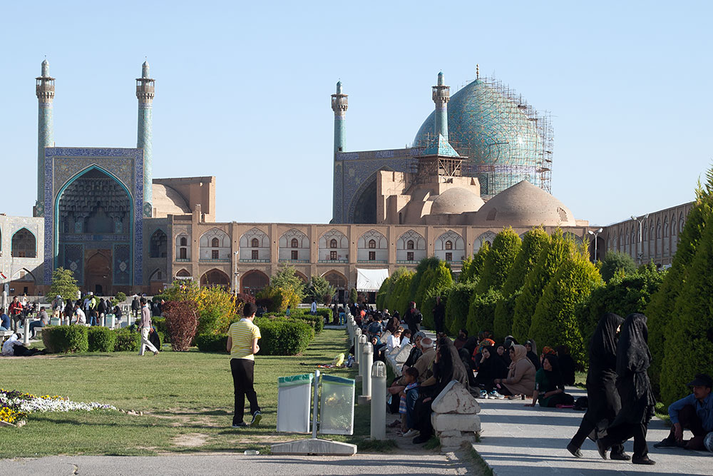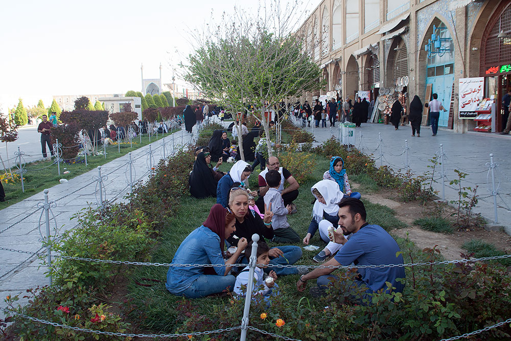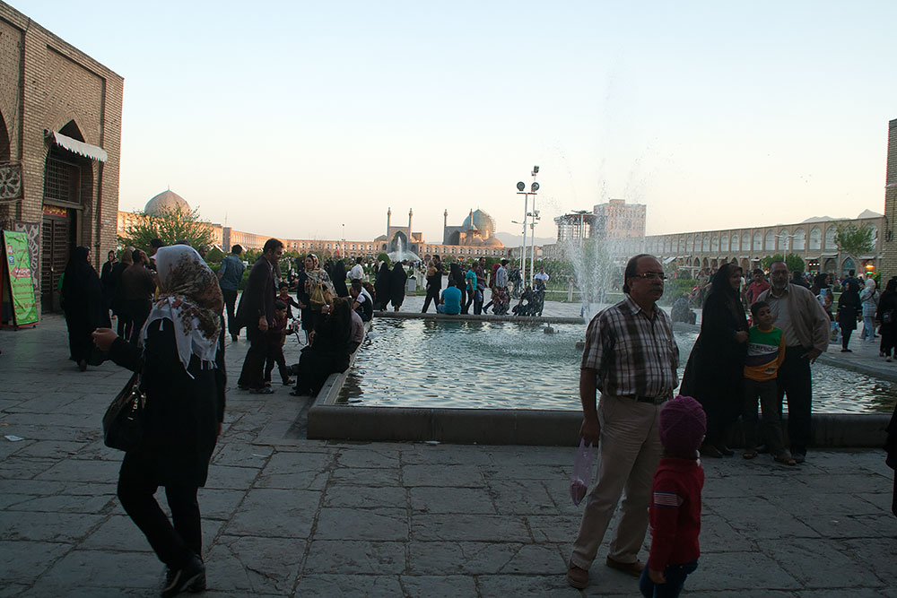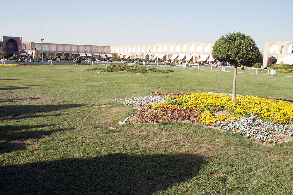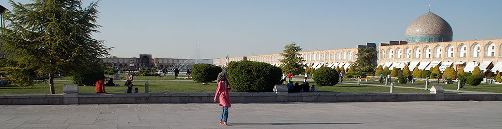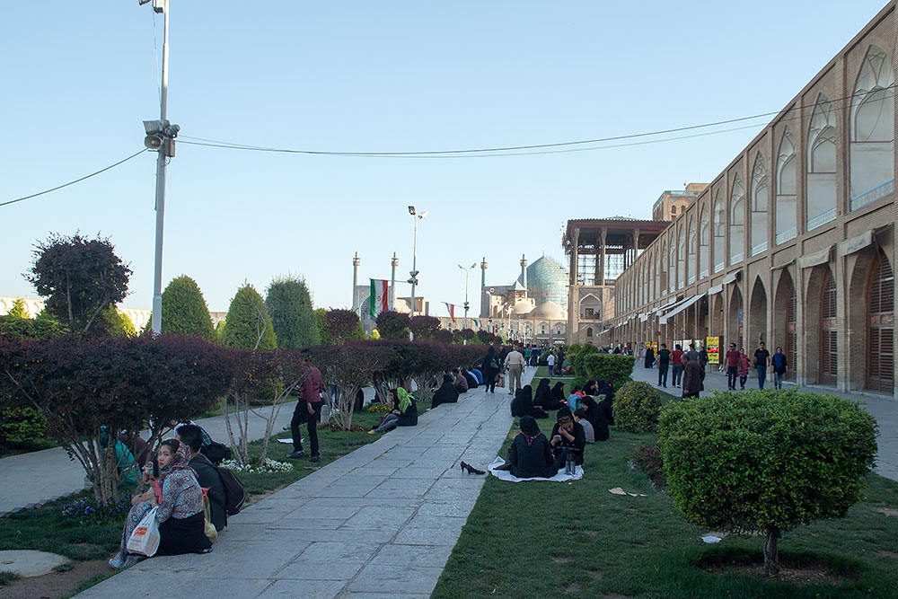 Danach fuhren wir zu Omid, vor dessen Tür schon sein Bruder Amin, in seinem Peugeot auf uns wartete. Froh nun wieder sicher zu sitzen, fuhren wir gemeinsam zum berühmten Imam-Platz mit seiner Moschee und dem Basar. Hier bekam ich erst einmal ein Softeis spendiert, bevor wir zum grossen Rundgang aufbrachen.