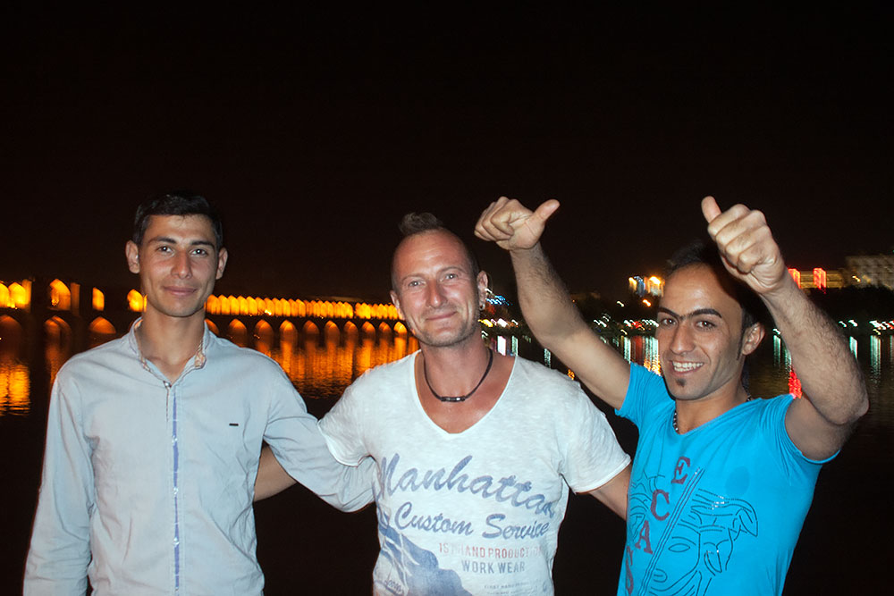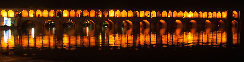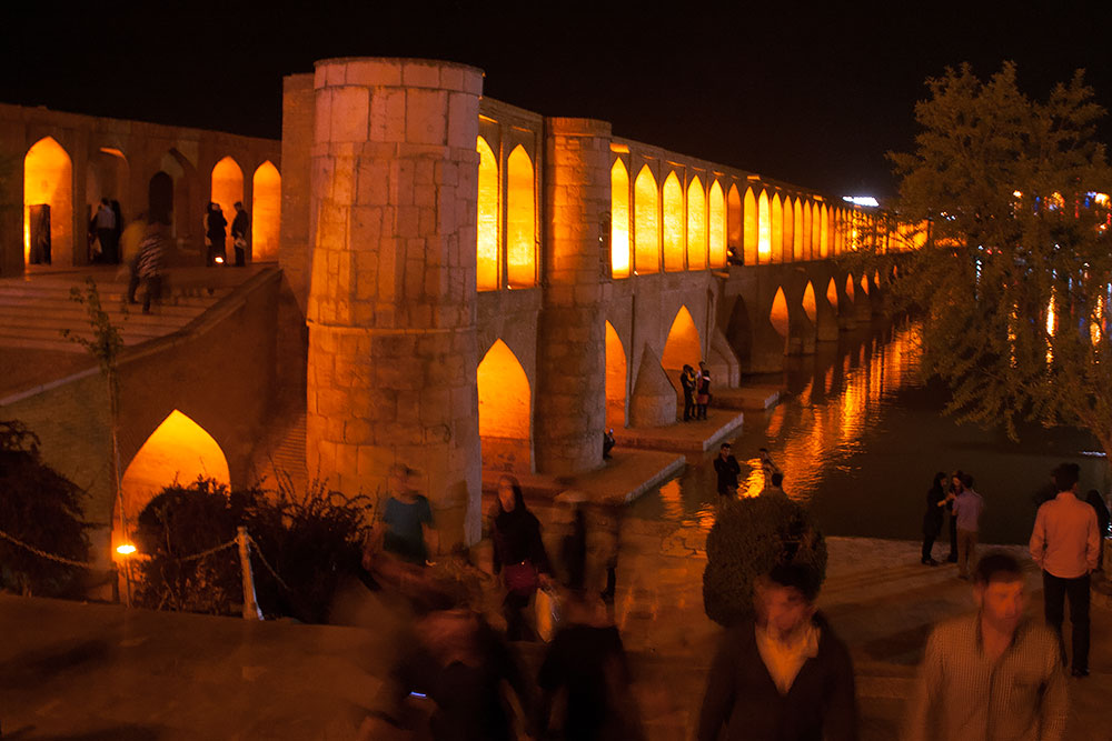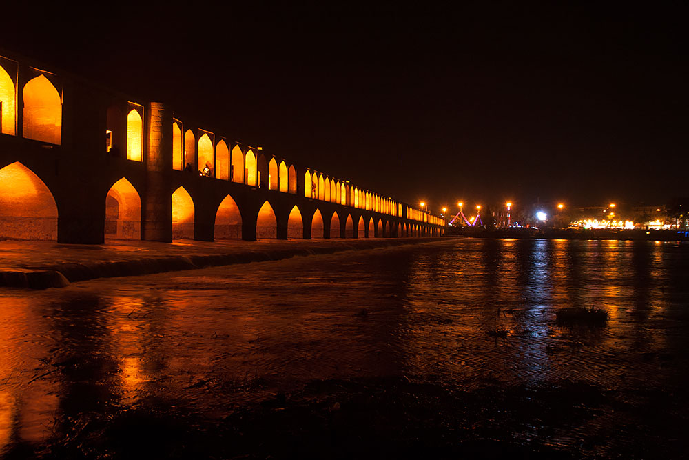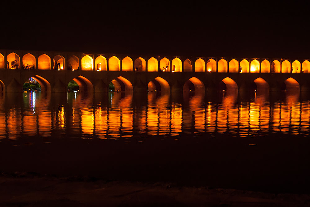 ...da die Nacht längst schon angebrochen war, konnten wir die Khaju-Brücke kunstvoll beleuchtet sehen.