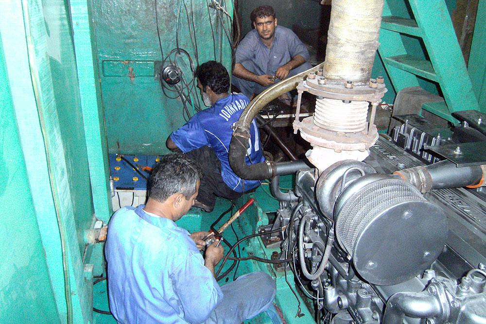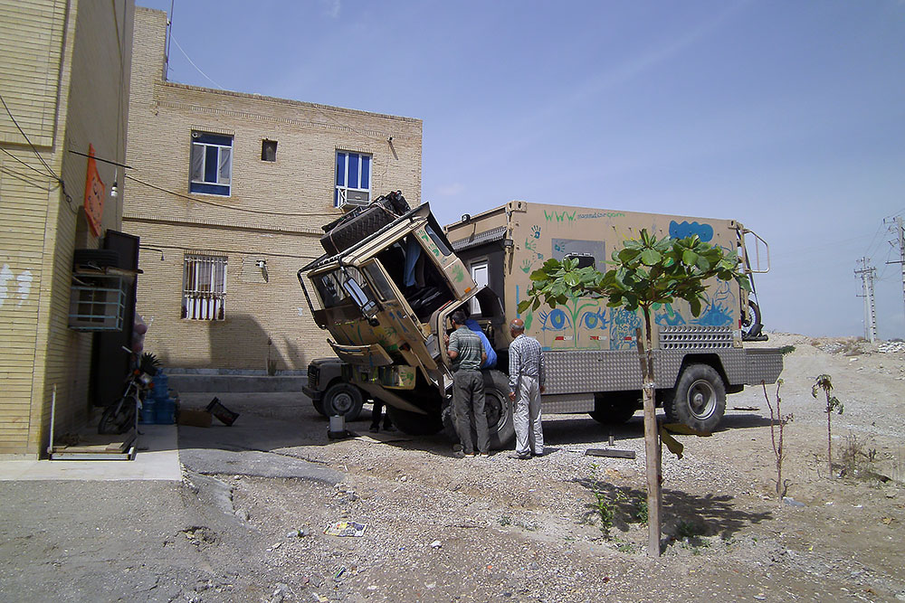 Für den Motor brauchten wir aber einen Spezialisten, es war ein anderer Freund von Hadi und von einem weiteren nutzten wir dessen Werkstatt. Ardalan, der Spezialist war wie ich vierzig Jahre alt und reparierte sonst Dieselmotoren von Schiffen. Sein älterer Bruder, ein KFZ-Mechaniker kam auch noch dazu und zusammen wollten sie das Problem der Hitzeentwicklung von Mammuts Motor auf den Grund gehen.