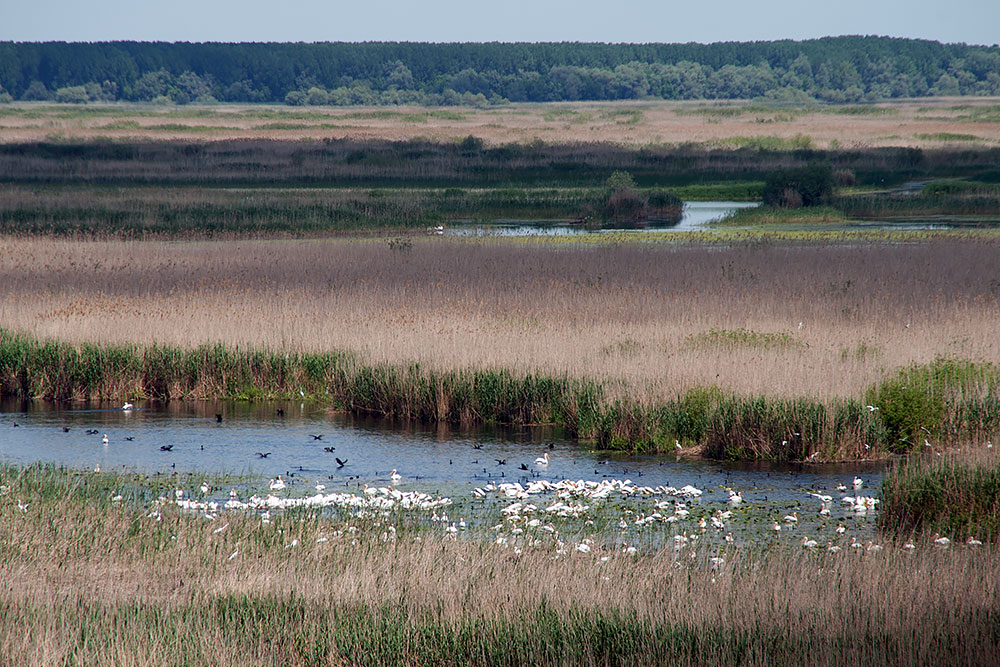 an der Reihe waren und mind. drei würden mir also auch noch folgen. Doch dumm waren sie dort leider nicht, sie kassierten schon vor dem Rauffahren ab, was ich vorher nicht sehen konnte. Und natürlich wurden keine Kreditkarten akzeptiert. Willkommen in Europa! Nur mal so zur Info: sogar die kleinen Fischhändler im Iran, draußen vor der Halle auf dem Markt, hatten ein tragbares Kartenlesegerät für ihre Kunden dabei! Vorwärts ging es also nicht weiter, darum wieder zurück nach Macin und cash besorgt. Doch die Fahrt war angenehm, da die Strasse direkt an einem Naturschutzgebiet endlang führte, dem „Balta Brailei“. |