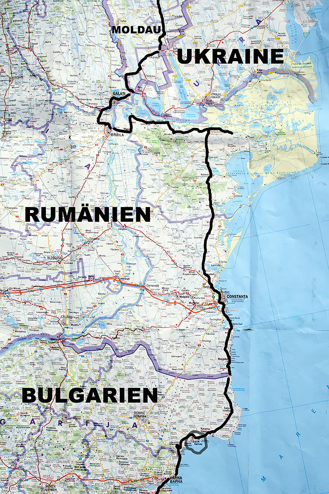 erledigen, warten, warten, warten. Auf dem zweiten Bild habe ich mal gestrichelt den Grenzverlauf nachgemalt und abgeschwächt die Route, die ich gefahren bin. Zu den Übergang in die Ukraine der unten rechts zu sehen ist, führt keine Strasse, sondern nur eine Bahnlinie. |